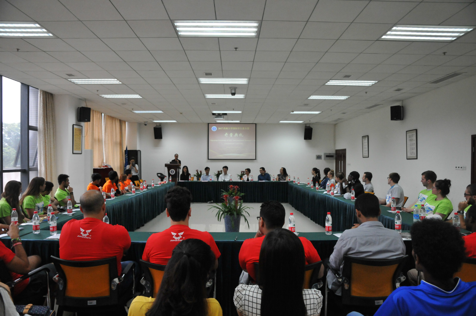 6月19日上午,sunbet申搏举行了“2017sunbet申搏国际员工夏令营”开营仪式。来自9个国家8所友好高校和1所中学的35名同学齐聚公司,开启了为期15天的参访学习。sunbet申搏经理王静、副经理李航,招生和教务工作负责人,以及任课教师代表、志愿者代表参加开营仪式。