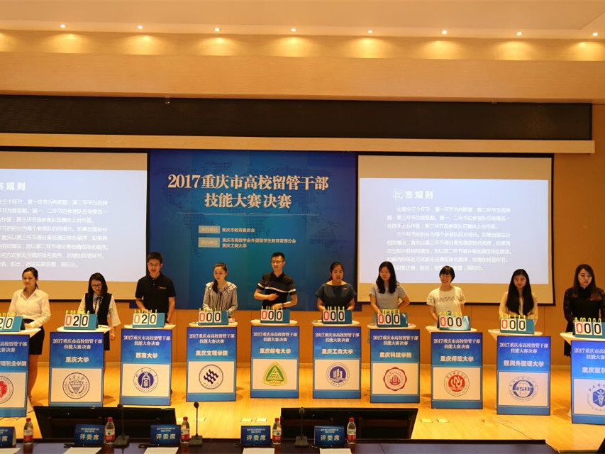 据介绍,重庆市高校留管干部技能大赛分为预赛和决赛两个环节,经过前期预赛,最终10支队伍进入决赛。由王鹊、李林泽、杨昆三名留管干部组成的公司代表队于今年三月参加了重庆市教委组织的留管干部技能培训和预赛,并以全市第二名的成绩进入决赛。