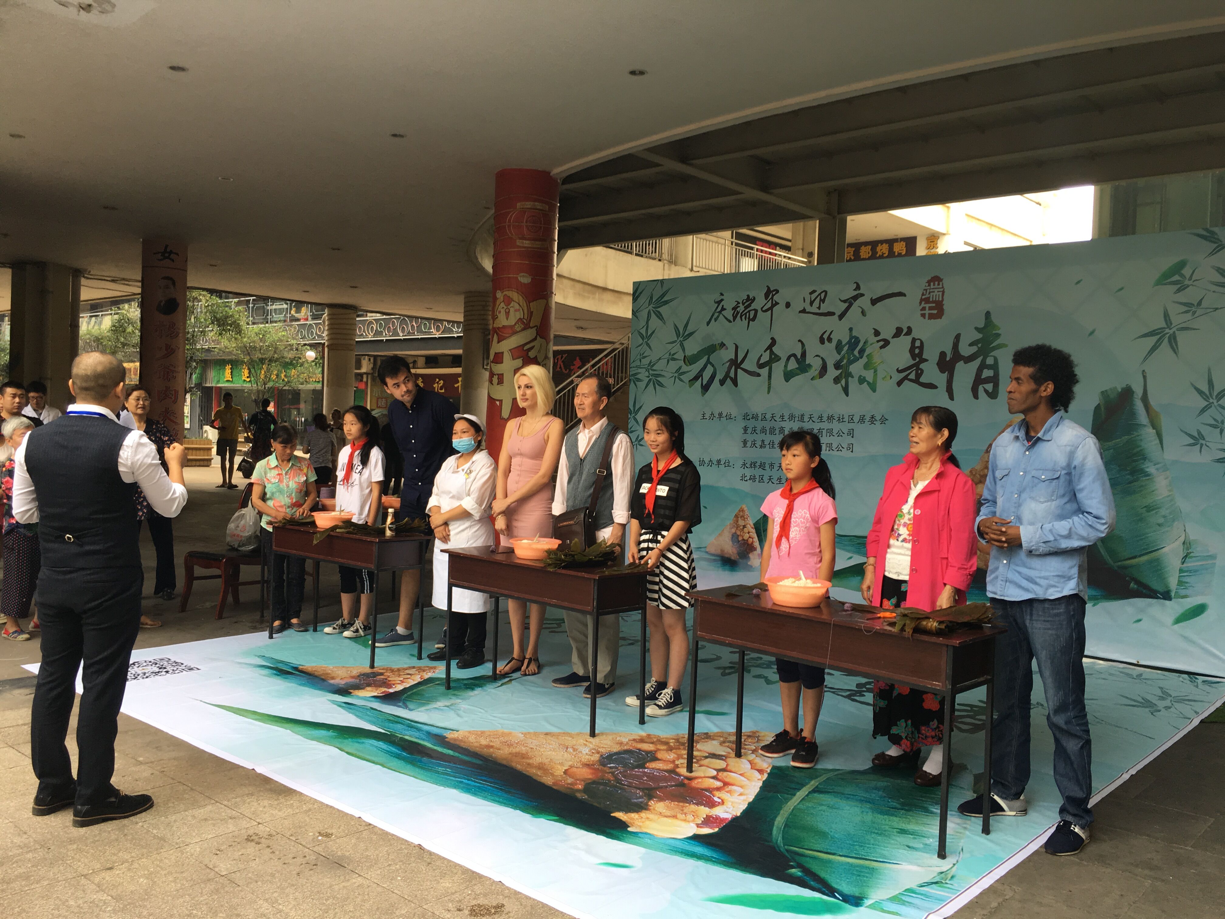 5月27日,北碚区天生桥社区“庆端午·迎六一 万水千山‘粽’是情”端午节庆祝活动正式拉开序幕,公司来自厄立特里亚的阿汤、赞比亚的Gift等九位同学受邀参加活动。