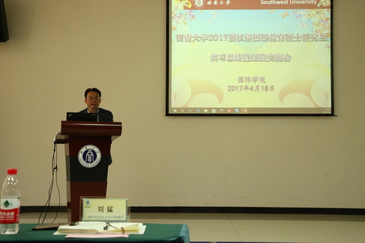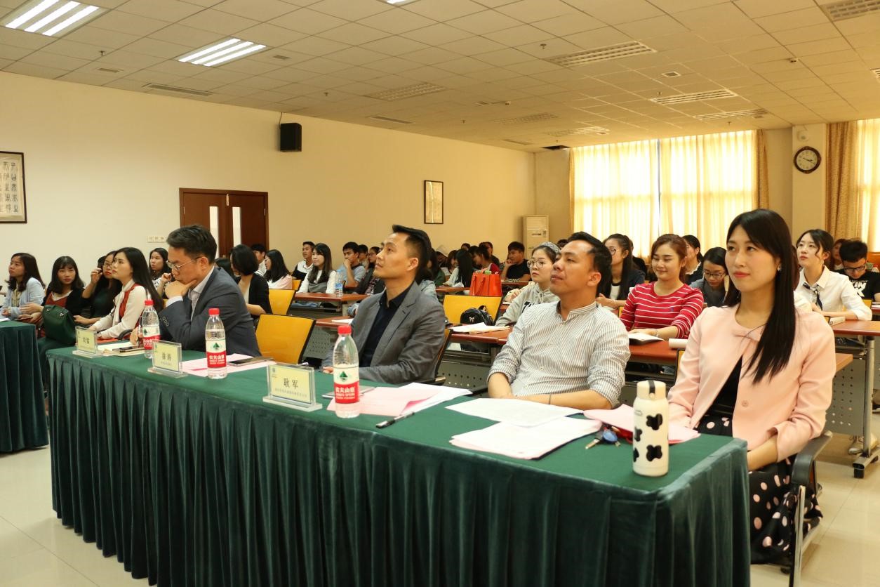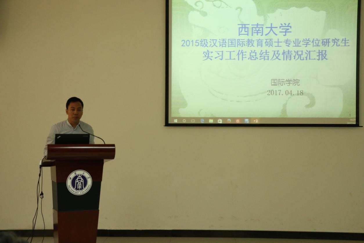 2017年4月18日下午三点,sunbet申搏2017届汉语国际教育硕士研究生实习总结暨经验交流会在紫云楼317教室成功举行。研究生院副经理涂涛,公司党总支书记刘猛,sunbet申搏汉语国际教育系主任耿军,sunbet申搏教师代表以及2015级和2016级汉语国际教育硕士共计100人参加本次会议。会议由sunbet申搏学工办主任陈雨曦主持。