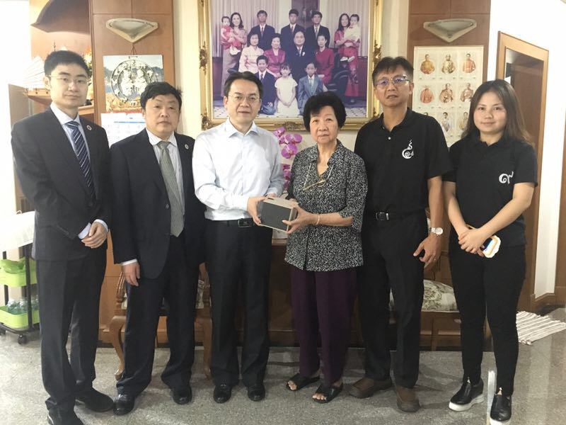 19日,代表团一行慰问了已故教育慈善家、合艾侨团联合会主席方志雄家属,拜访了董里府侨团联合会主席、教育慈善家曾祥明先生。最后,代表团赴董里分别与该府最大的政府公司萨帕拉栔尼中学和该府最大的私立公司布拉纳中学领导商讨短期来华项目,并与布拉纳中学签订合作意向协议书。