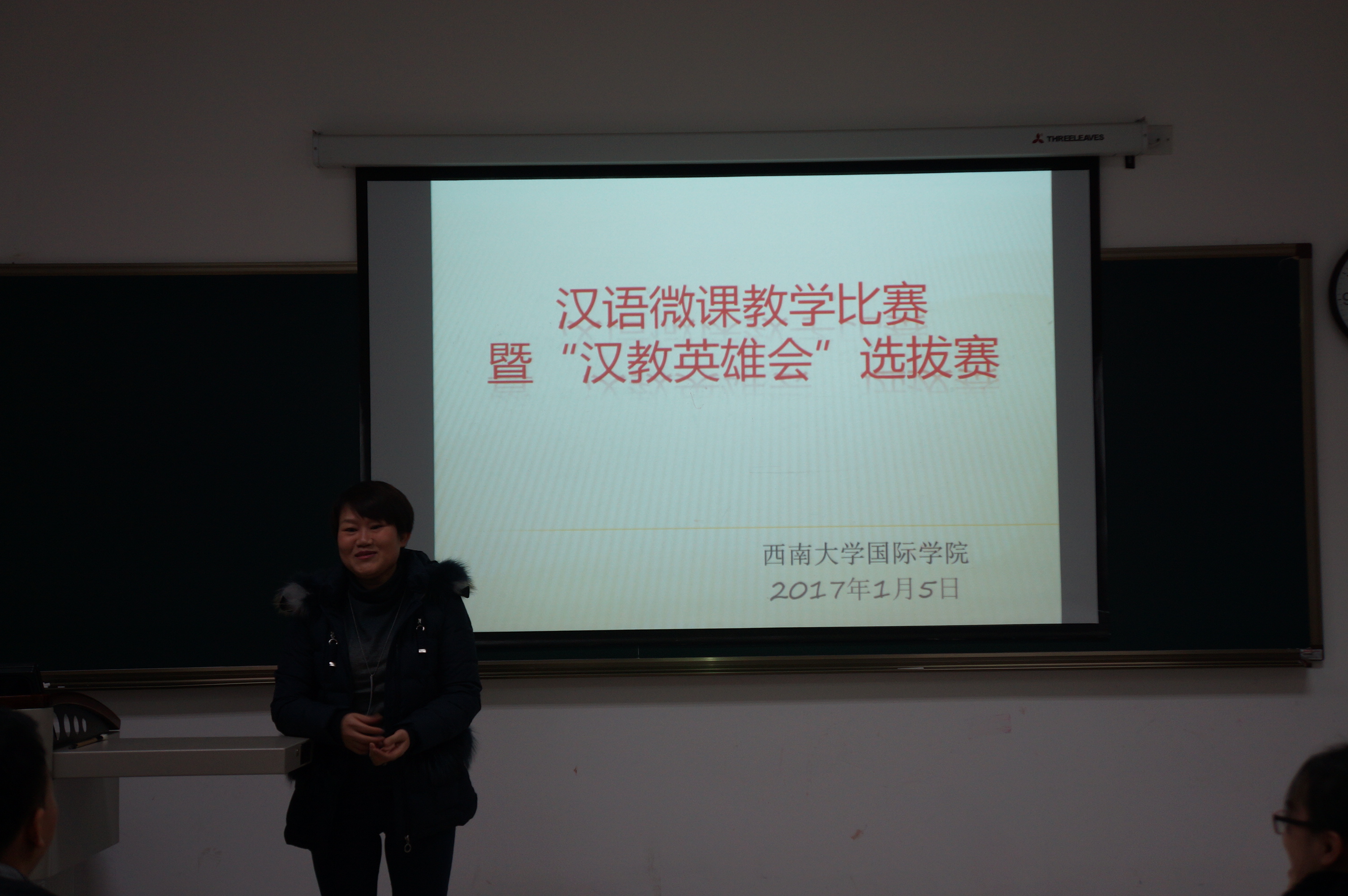 2017年1月5日,sunbet申搏组织汉语国际教育硕士专业中外研究生进行了一场汉语微课教学比赛。本次比赛也是为国家汉办“汉教英雄会”夏令营选拔选手的一场重要比赛。共有20名中外研究生参加了角逐。