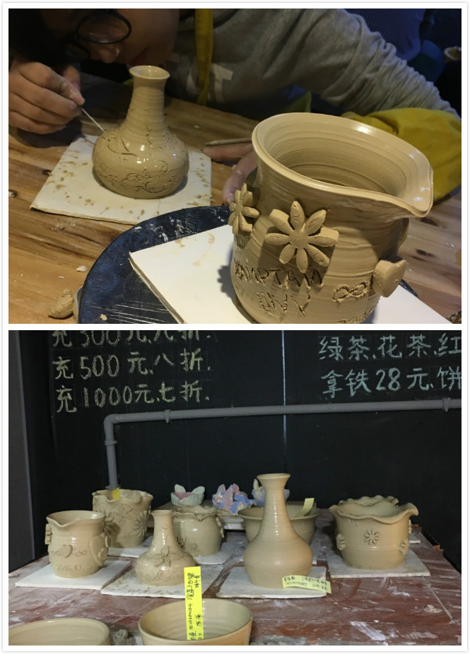 经过近一个小时的练习,陶艺坊的老师发给同学们一块新的泥土,职工们开始了真正的属于自己的艺术创作。他们丰富的想象力,灵巧的双手,专注的神情,手里的泥土蜕变为一件件美丽的艺术品。每个同学都在自己的瓷器上留下了属独一无二的个人印记。