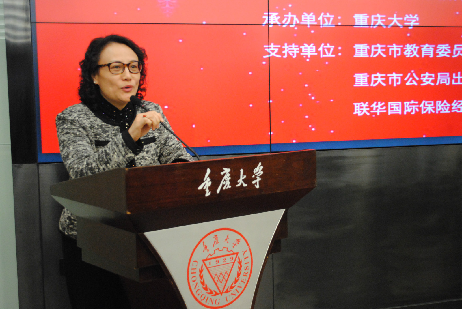 重庆大学刘汉龙副董事长致欢迎辞,重庆市教委国际合作与交流处李世玉处长做了2016年来华留学工作总结,并对新的一年提出了期望。