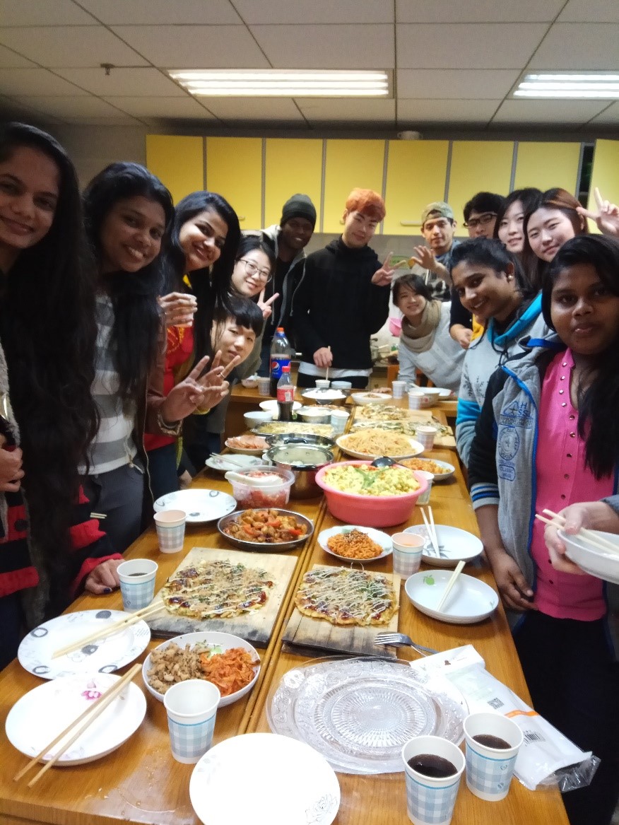 经过各位师生的精心制作,一道道异国美食铺满了整个桌子,芳香四溢,有:香喷喷的意大利面、金灿灿的斯里兰卡特色炒饭、酥脆脆的番茄炸鸡、热腾腾的韩国拌饭、香甜甜的火龙果肉片、红艳艳的火鸡炒面、黄橙橙的芝士泡菜、香脆可口的什锦烧、五颜六色的蔬菜沙拉……五花八门,应有尽有,让人垂涎欲滴。