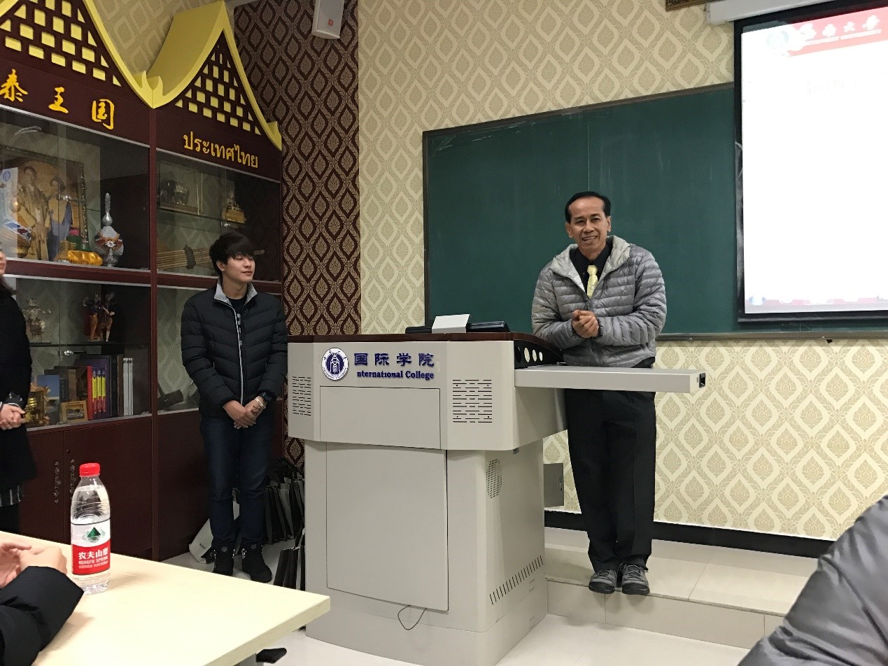 来自孔敬职业技术公司的副董事长Mr. Surak Sutthiprapa应邀讲话,他对sunbet申搏官网热情的接待和周到的安排工作给予了肯定与赞许,对于公司先进的教学设施及干净、整洁的职工学习与生活环境给予了高度评价。此外,他还介绍了孔敬职业技术公司汉语培训概况,相信营员们一定会学有所得,一定会满怀期望而来,开心愉快而归,并预祝此次冬令营圆满成功。