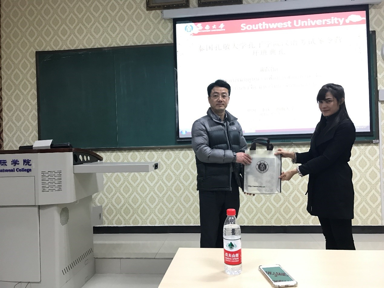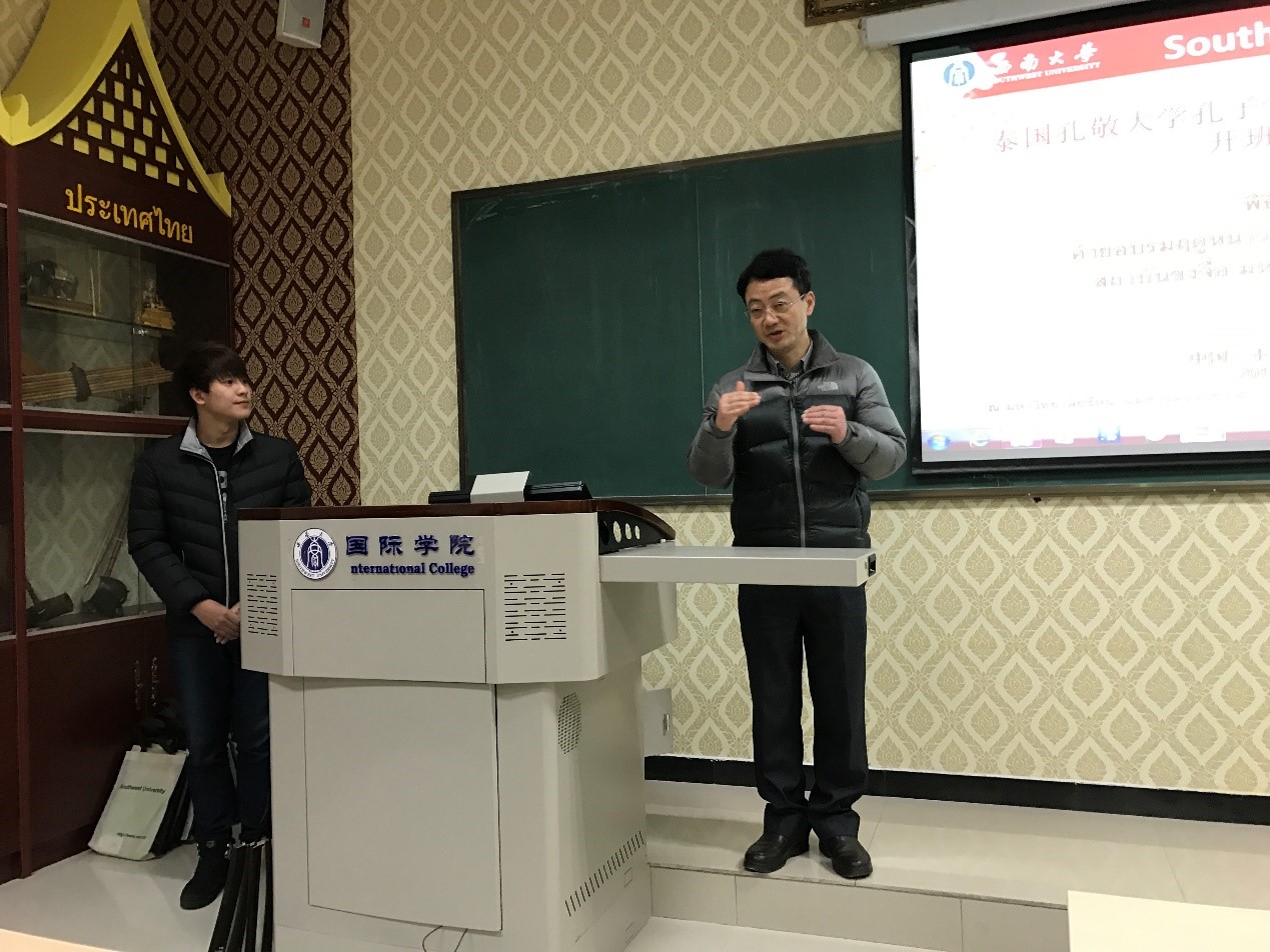 12月17日下午4:30,泰国孔敬大学孔子公司汉语考试冬令营开班典礼在公司紫云楼210教室顺利举行。来自泰国2所职业公司的4名领队教师、20名员工,孔敬大学孔子公司带队教师丰雅,以及sunbet申搏副经理李航、招生办公室主任代远鸿、项目负责人张波、泰国员工志愿者等30余人参加了此次开班典礼。