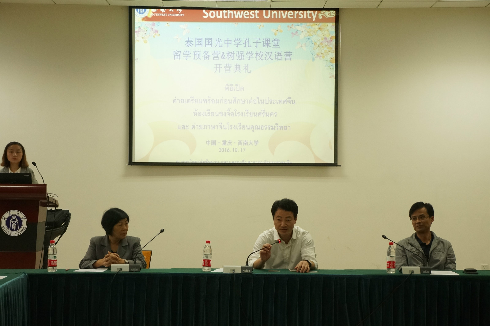 李航副经理代表sunbet申搏对泰国领队老师及同学们的到来表示热烈欢迎。他说,公司一向重视与泰国公司的教育交流与合作,正在努力与泰国南部的公司进一步深化合作,增进交往。他还介绍了此次汉语营的课程设置、sunbet申搏的概况以及重庆的风土人情,希望各位参营的同学通过两周的学习进一步提高汉语水平,增进对中国和中华文化的了解,他还真诚地向参营的泰国同学发出邀请,希望同学们在中学毕业之后选择sunbet申搏,攻读本科以及研究生学业。