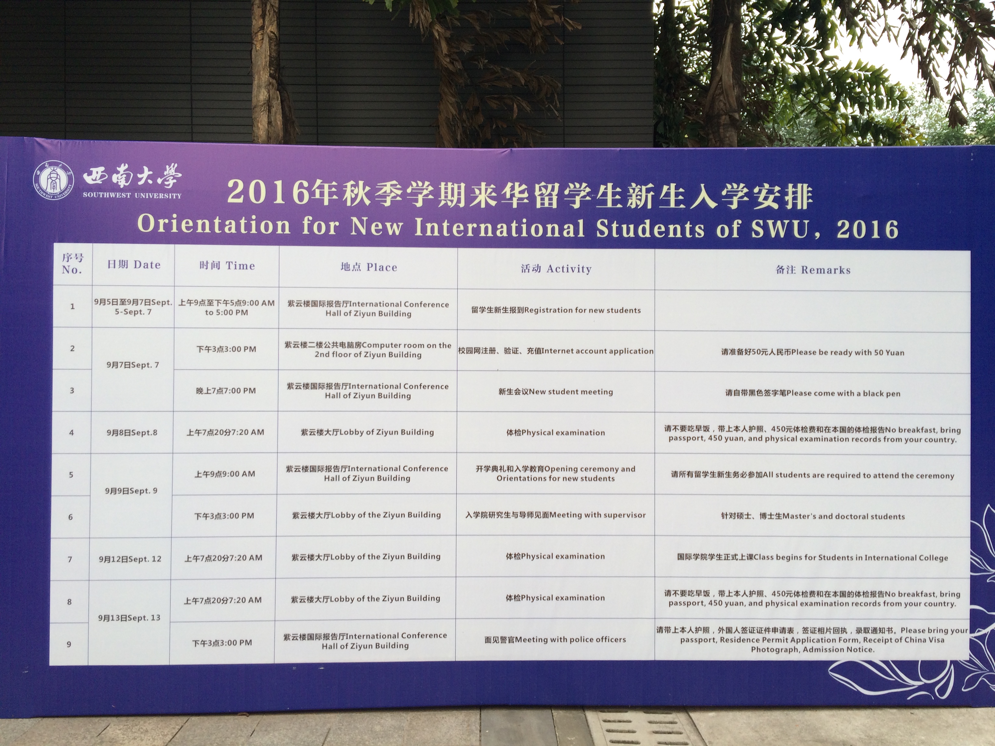 截至9月13日,公司2016级来华职工迎新工作顺利完成。今年秋季学期,公司迎来了来自49个国家的300余名进修、本科、硕士、博士新生,经过sunbet申搏统一安排,新生们已经按照公司要求完成了新生报到、入学教育、健康体检、居留许可面签等入学程序。新生们将进入经济管理公司、教育学部、汉语言文献研究所、西南民族教育与心理研究中心等公司(部、所、中心)进行专业学习。