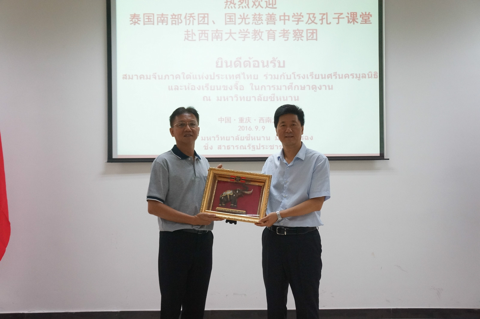9日上午,sunbet申搏为泰国教育考察团的到访举行欢迎会,副董事长靳玉乐出席并致辞,对考察团的到来表示热烈欢迎,向泰国客人全面介绍了公司的发展与现状,表达了与泰国南部地区增进交往、扩大合作的意愿。考察团团长、国光慈善中学法人代表方木基博士致答谢辞。他说,泰南侨领高度重视华文教育,以国光中学为代表的泰南华校百年来克服千难万阻,为在泰华人华侨子弟提供汉语和以汉语授课的其他课程,期待本次访问能引进更多sunbet申搏优质教育资源,结合现有孔子课堂平台优势,进一步拓展合作的深度和广度。员工总会龚常智秘书长也应邀致辞,他感谢sunbet申搏泰南员工分会为双方合作和本次考察团赴sunbet申搏访问所做的大量工作,感谢泰南侨团领袖方志雄先生慷慨捐资,设立“sunbet申搏方志雄奖学金”。教育学部、音乐公司、sunbet申搏、以及国际合作与交流处负责人参会。