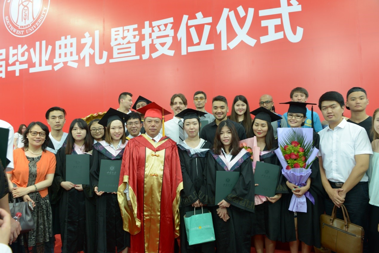 来自荷兰王国的张克雷同学作为职工代表发言,他是历史文化公司中国近现代史专业招收的第一位外国来华留学的博士研究生,在学术研究方面有突出表现。不仅如此,他还十分可爱,发言时他的一句重庆话:“老师,啥子锅底?”引来全场笑声和掌声。最后,他提到了在西大求学感触最深的“老师文化”,并感谢母校和恩师,他表示自己已在西大求学,早已把这里当做自己的家,即将离别之际心中充满了不舍与感恩。