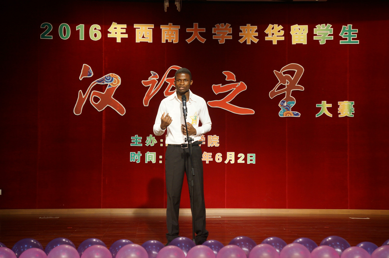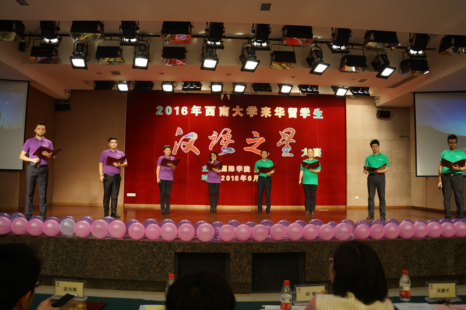 6月2日晚7时,2016年sunbet申搏来华职工“汉语之星”大赛决赛在sunbet申搏学术报告厅举行。来自泰国、哈萨克斯坦、越南、日本、几内亚比绍、佛得角、刚果(布)等9个国家的11名选手经过层层选拔脱颖而出,展开了初级、中级、高级等3个组别“汉语之星”的终极角逐。