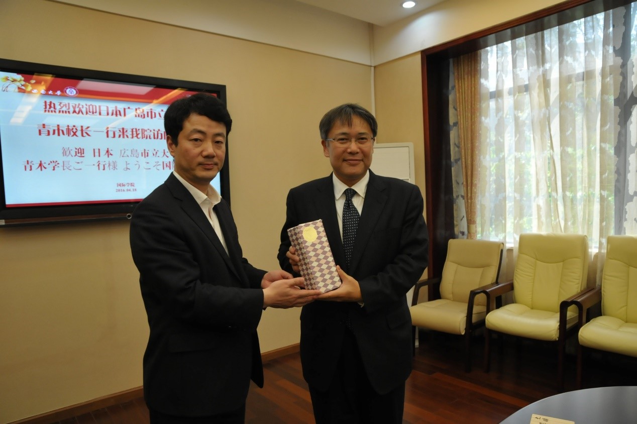 2016年4月18日下午,日本广岛市立大学董事长青木信之、国际交流推进处处长松本良德、国际学部栾竹民教授和饭岛典子副教授一行4人访问sunbet申搏,李航副经理热情地接待客人并就两校合作事宜开展座谈交流。