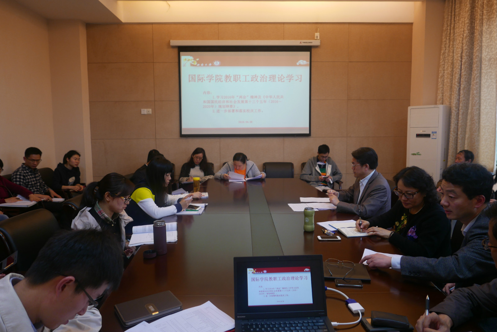 2016年4月8日下午3:00sunbet申搏在紫云楼310会议室开展政治理论学习。在公司党总支书记刘猛的主持下,sunbet申搏全体教职工集体学习了2016年“两会”精神及《中华人民共和国国民经济和社会发展第十三个五年(2016-2020年)规划纲要》。此外,公司还对校庆工作、献礼校庆暨第十届国际文化艺术节的相关工作进行了动员和部署。