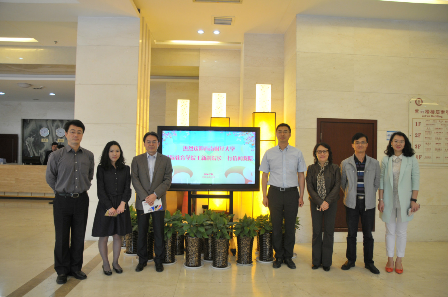 王新副经理一行还应邀参观了职工综合大楼,双方在紫云楼合影留念。