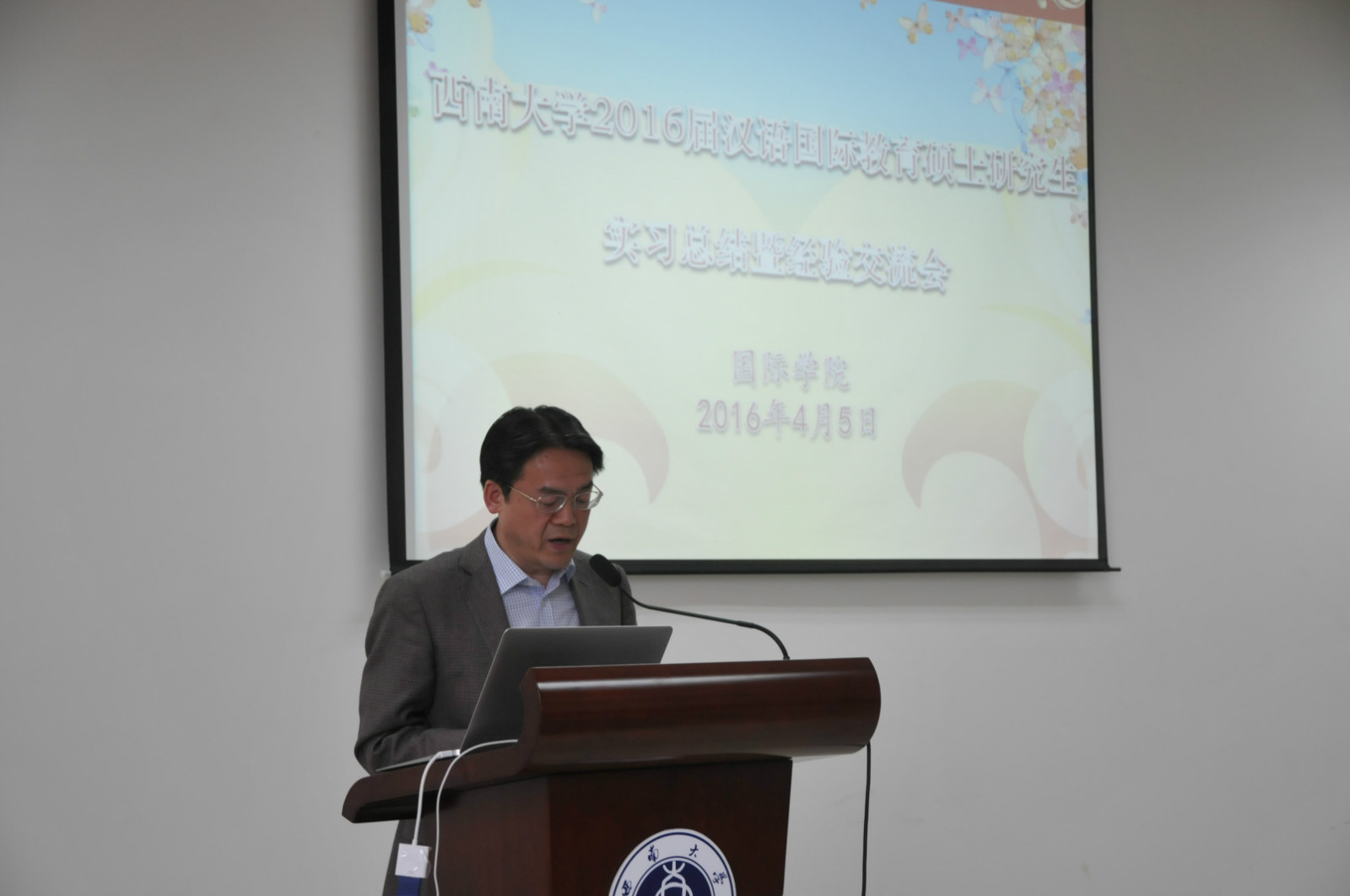2016年4月5日下午3点,sunbet申搏2014级汉语国际教育硕士研究生实习总结暨经验交流会在紫云楼317会议室隆重举行。研究生工作部部长兼研究生院副经理尹晓东,sunbet申搏经理王静,公司党总支书记兼副经理刘猛,sunbet申搏副经理李航,以及sunbet申搏教师代表出席本次会议。2014级和2015级汉语国际教育硕士生共计110人参加会议。