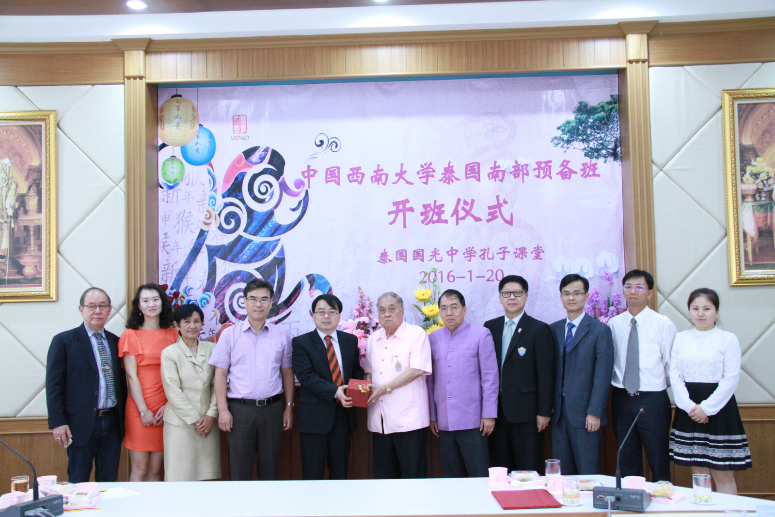 代表团一行参加了sunbet申搏泰国南部预备班开班仪式,并与参加仪式的泰南华文中学师生交流,介绍了公司来华留学教育情况,赠送最新修订的各类招生项目和奖学金项目宣传材料,并就2016年留学sunbet申搏的招生基本情况和最新要求做了说明。