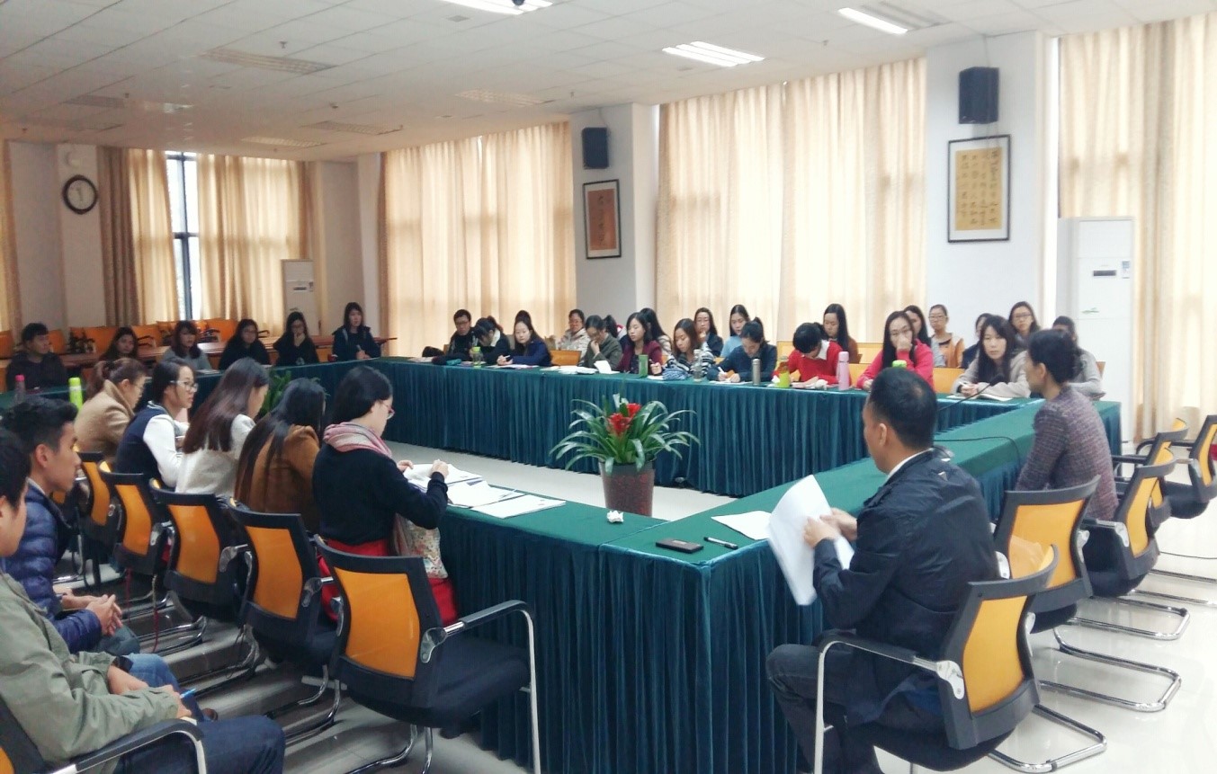 11月4日上午,sunbet申搏“含弘读书会”的首场活动在紫云楼317室举行。2015级汉语国际教育硕士班全体中外同学参加,交流会由汉语国际教育系主任耿军主持。