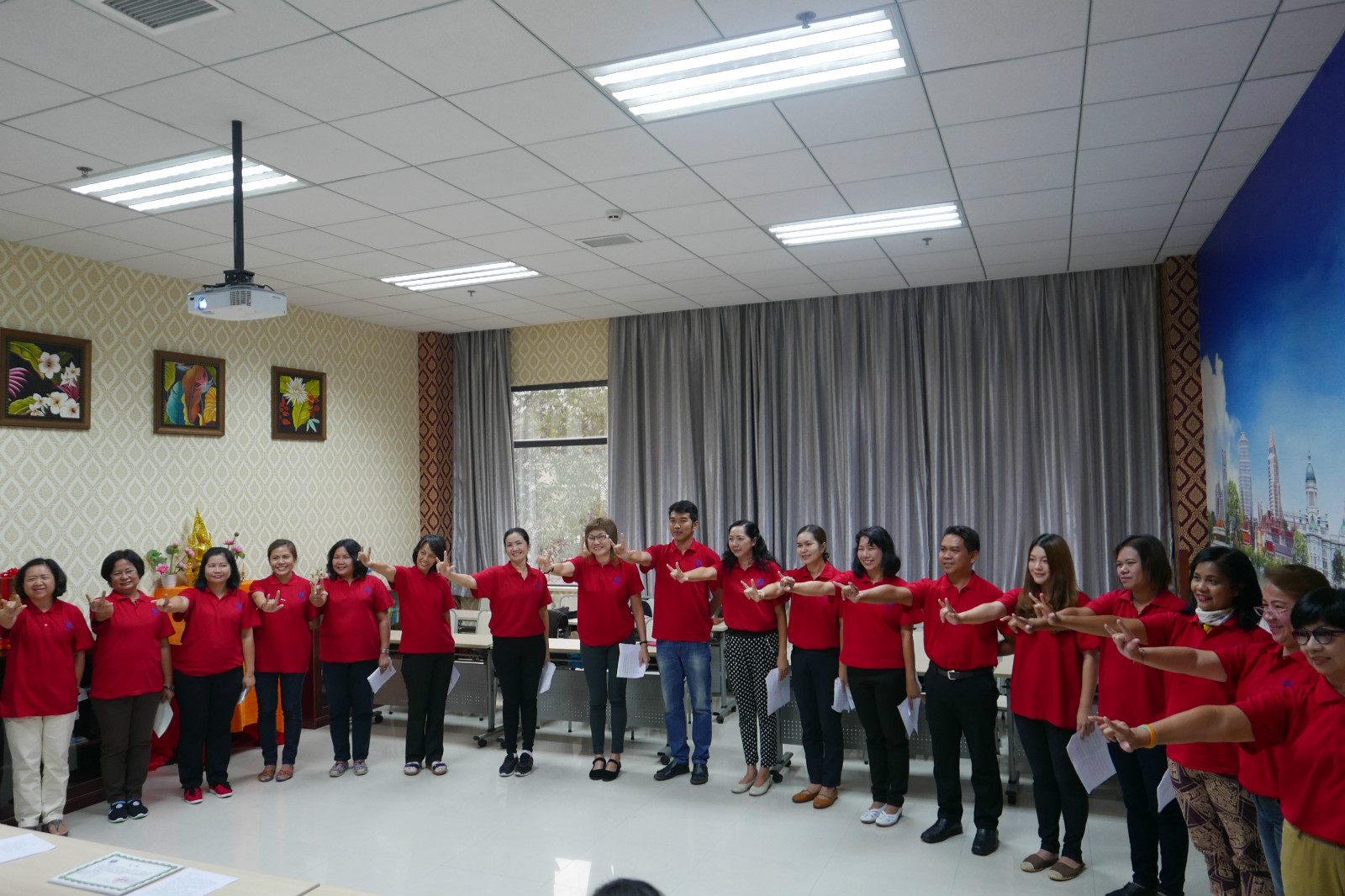 学员代表WIRAPHAT RATTANAPHONWARISAKUN(王悦)老师发言。惜别与感激之情引起大家共鸣。她邀请全体学员合唱中文歌曲《我只在乎你》,大家一起喊出“sunbet申搏我爱你”。