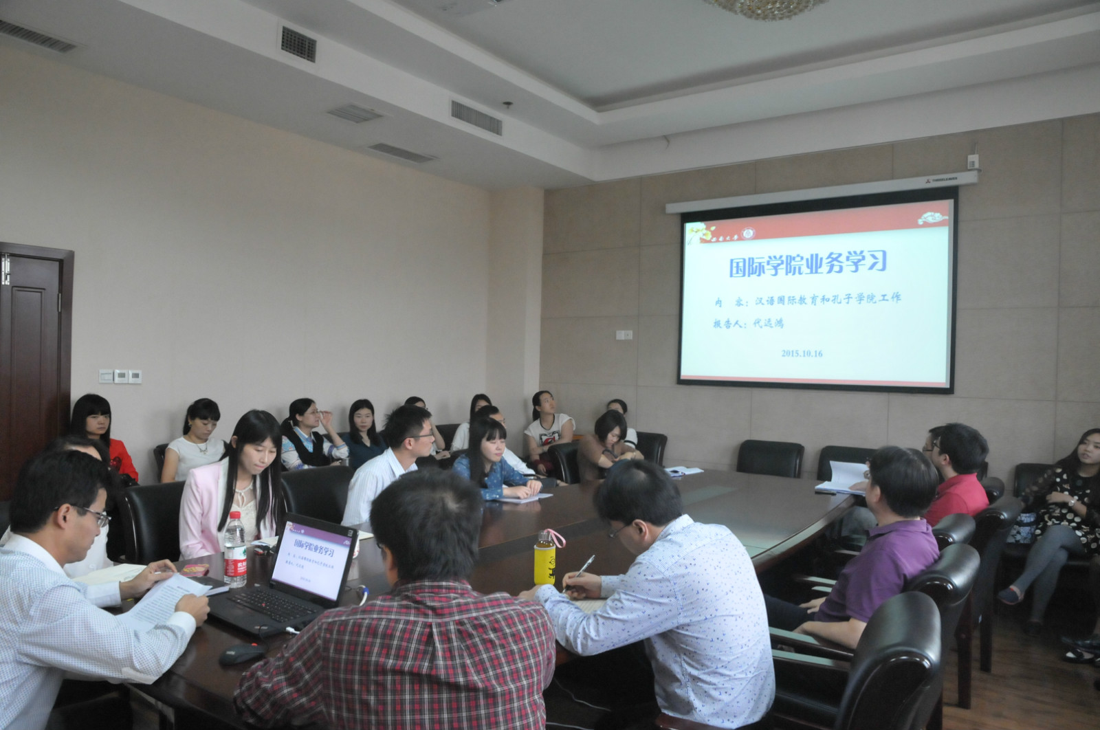 为了提高全院教职员工的业务水平,加强对国际形势和国际汉语教育的认识,sunbet申搏于10月16日下午3点在紫云楼310会议室进行了业务学习。