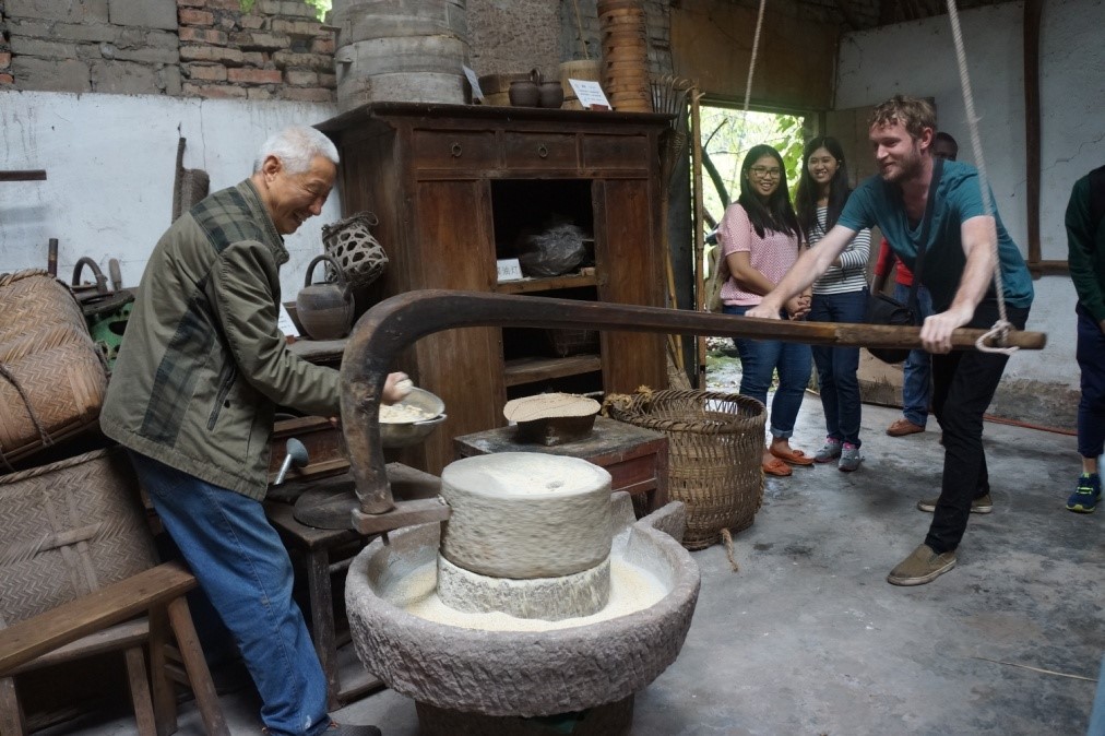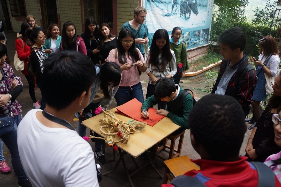 9月27日上午,sunbet申搏启动汉语国际教育硕士职工班社会实践活动,sunbet申搏刘猛书记和教师代表带着21名汉硕职工饶有兴趣地参观了重庆**农耕文化陈列馆和蔡家岗新寨子,“老外”们对**古老的农耕文化赞叹不已。