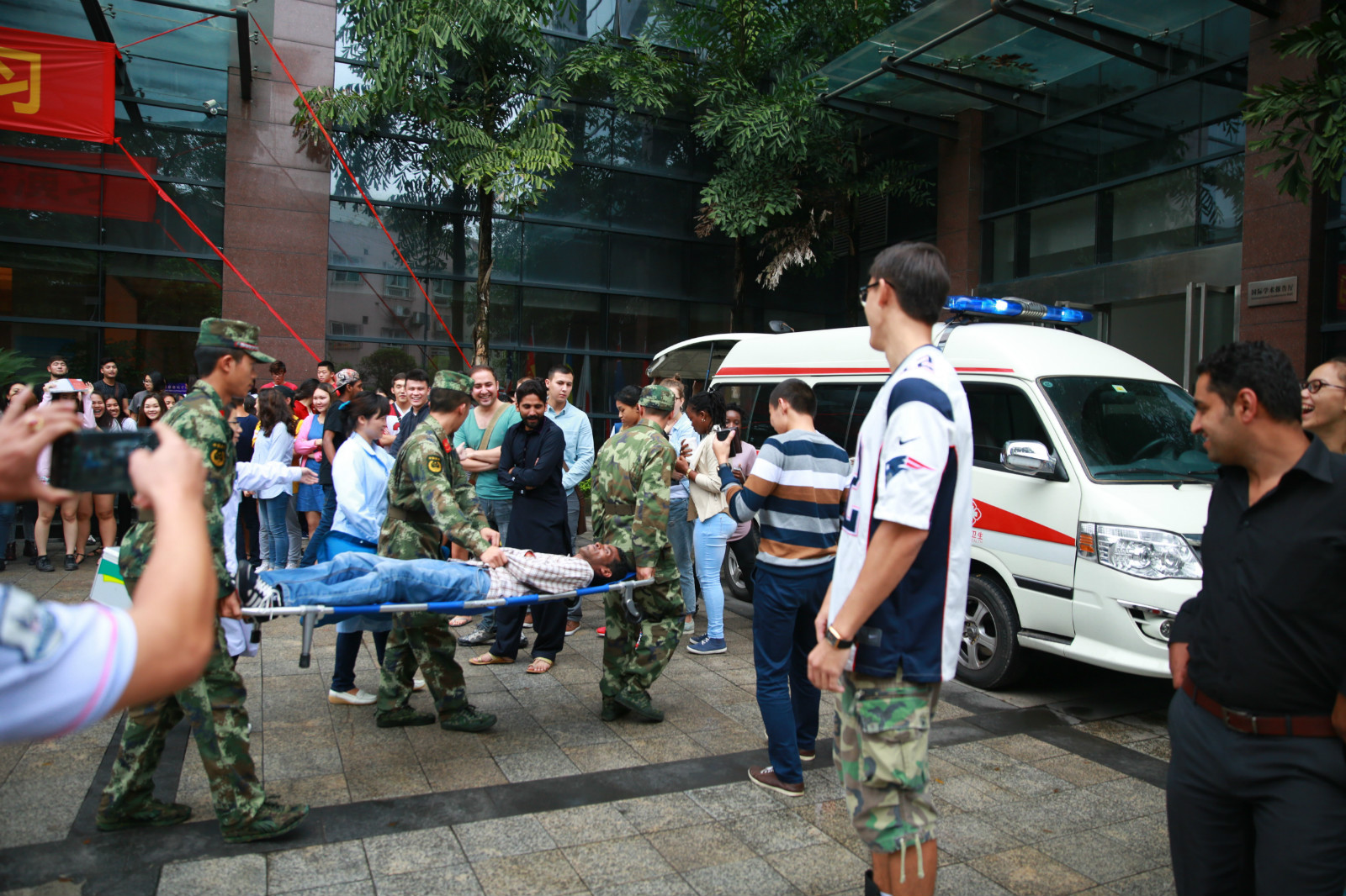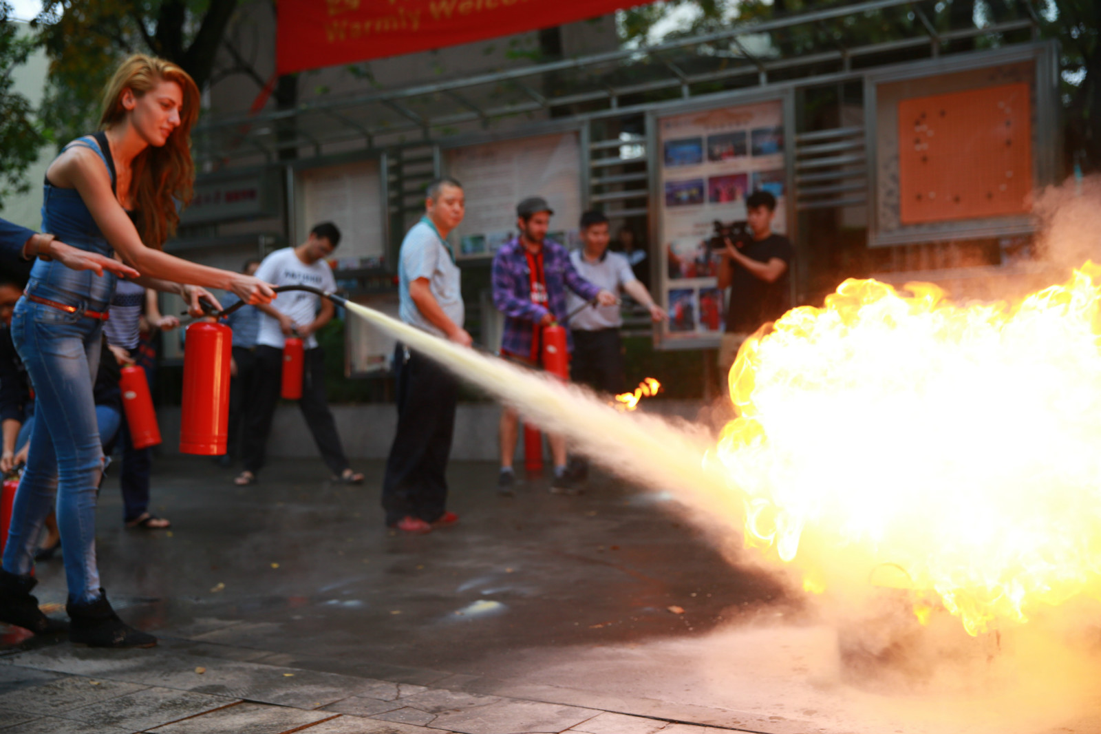 9月24日下午3时30分,sunbet申搏紫云楼门前浓烟滚滚、警报长鸣,只见各国职工们用湿毛巾捂住口鼻,快速有序地从房间和教室逃离。烟雾中,伴随着纷纷逃离的人群,一名冰敷输液的“伤员”被担架从紫云楼中抬出,已然得到了有效“救治”。待浓烟散去,惊魂甫定的围观群众才发现紫云楼前的赫然几个大字:“公司职工消防安全演练”。