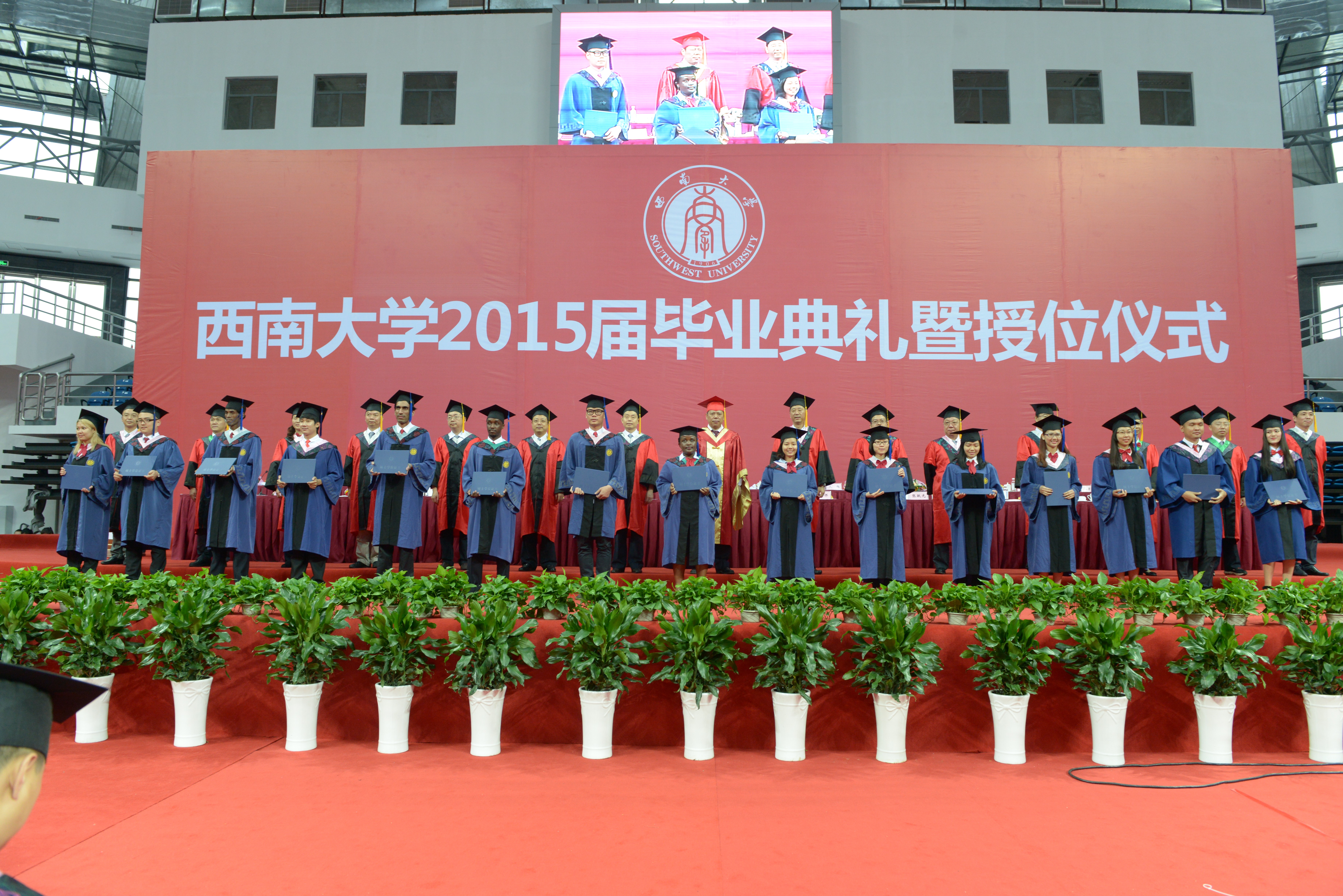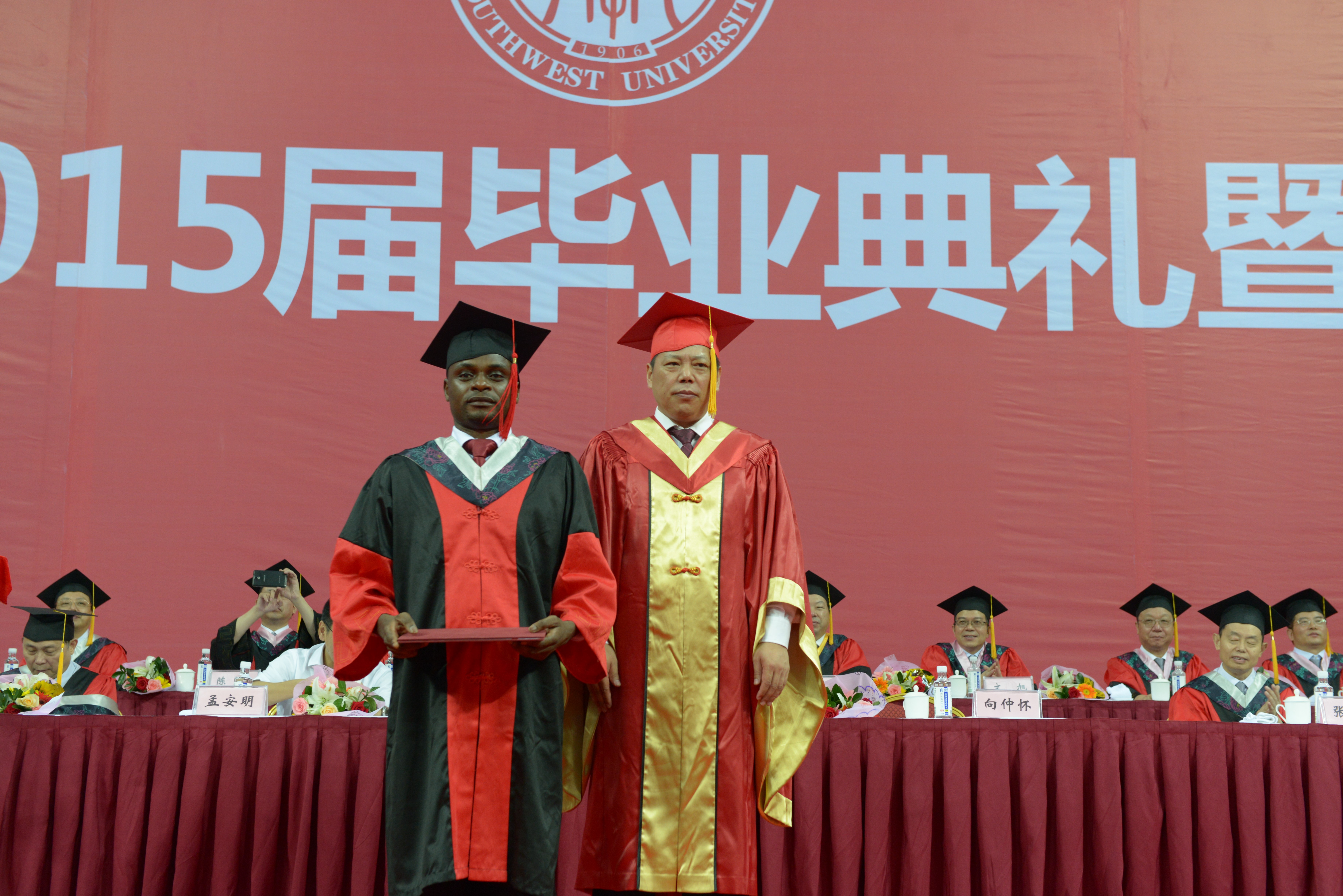 随后来自哈萨克斯坦的毕业职工代表古丽米拉和中国毕业生代表刘欢欢分别发言。毕业后的她们还将留在西大攻读博士学位和从事教育事业,毕业却不说再见的她们更是对母校的悉心培养深表感谢。前职工会主席、来自刚果(布)的美民同学还宣读了《毕业感谢信》,他表示自己已在西大求学八年,早已把这里当做自己的家,即将离别之际心中充满了不舍与感恩。毕业生导师代表来自地理科学公司的廖和平老师则动情地回顾了自己在摸索中探求职工培养之法的艰难道路,还对毕业生在汉语水平和专业学习等方面取得的进步表示肯定。