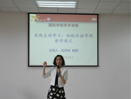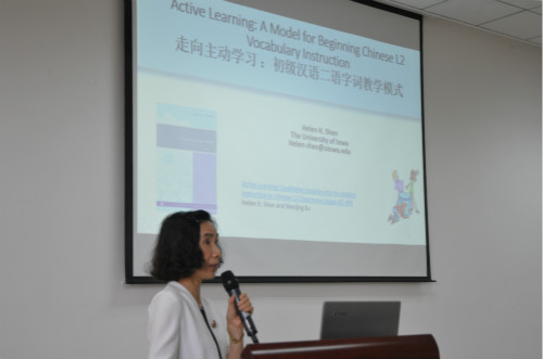 2015年5月29日下午,美国爱荷华大学亚洲语言文学系博士生导师、中文部主任、系研究生部主任沈禾玲教授在sunbet申搏317报告厅举行了题为《走向主动学习——初级汉语字词教学模式》的学术讲座。sunbet申搏汉语国际教育硕士中外研究生及全体教师参加讲座。