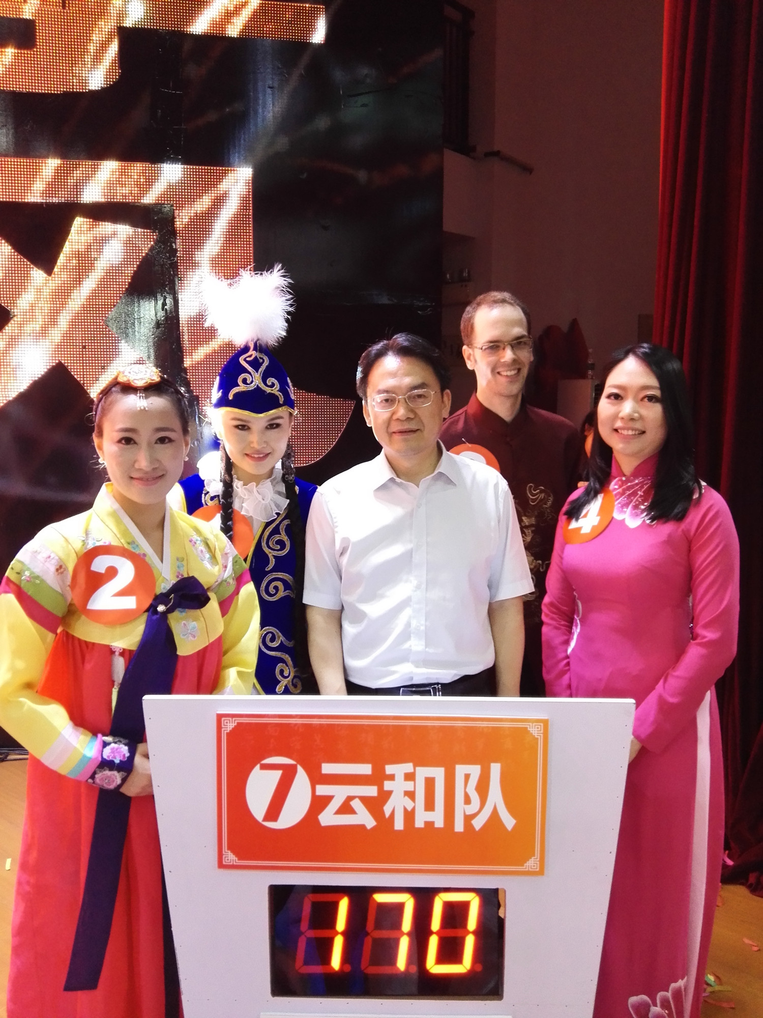 国学知识竞赛对中国文化根基尚浅的职工而言本身就是一个巨大挑战,况且是和来自全校的佼佼者同台较技。为了全面展示公司职工的风采,sunbet申搏不仅对舞蹈《千手观音》再次做了精心编排,还从职工中选出精兵强将组成“云和”队,其中有获得2014“汉语桥”全国亚军的中国通—哈萨克斯坦职工帕丽扎;有足迹遍布南北的洋导游—韩国职工朴秀海;有在公司攻读博士的学霸越南职工李嘉燕;还有娶了重庆妹子扎根中国的洋女婿—捷克职工皮亚杰。此外,sunbet申搏教师李晓丹负责对选手进行了国学知识的系统辅导,经过近3周的备战,选手们的国学知识得到明显强化。
