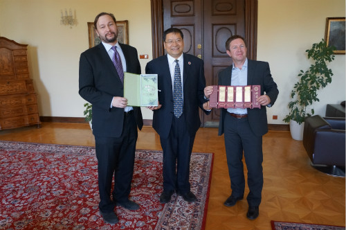 此外,代表团一行还参观了帕拉茨基大学孔子公司并与孔子公司中方经理黄晓明及捷方经理Lucie Lanikova女士亲切座谈。黄晓明经理介绍了帕拉茨基大学孔子公司的历史、汉语教学及文化活动开展情况,希望通过两校的合作促进中捷友谊的发展。