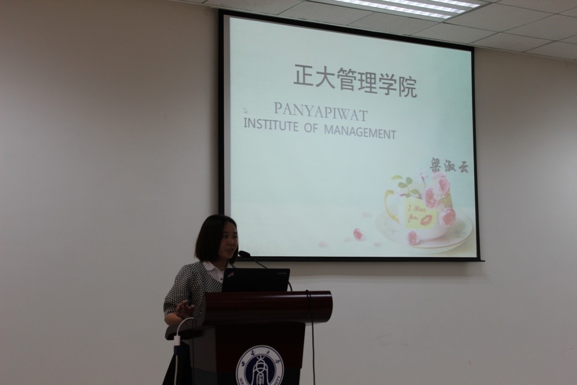 公司2013级汉语国际教育硕士分别在泰国孔敬大学孔子公司、泰国正大管理公司、泰国国王科技大学、泰国皇家理工大学、韩国仁济大学、韩国蔚山大学等6个海外实习点进行了为期或半年或10个月的实习。本次实习总结会以2013级同学的实习短片开场,短片既温馨又感人,大家一起重新温故了在海外教学和生活的点点滴滴。随后,实习生代表们用生动幽默的语言、图文并茂的PPT,分别就他们所在的实习点的实习情况做了详细的汇报和总结,并对即将赴海外实习的2014级同学进行了鼓励和祝福。