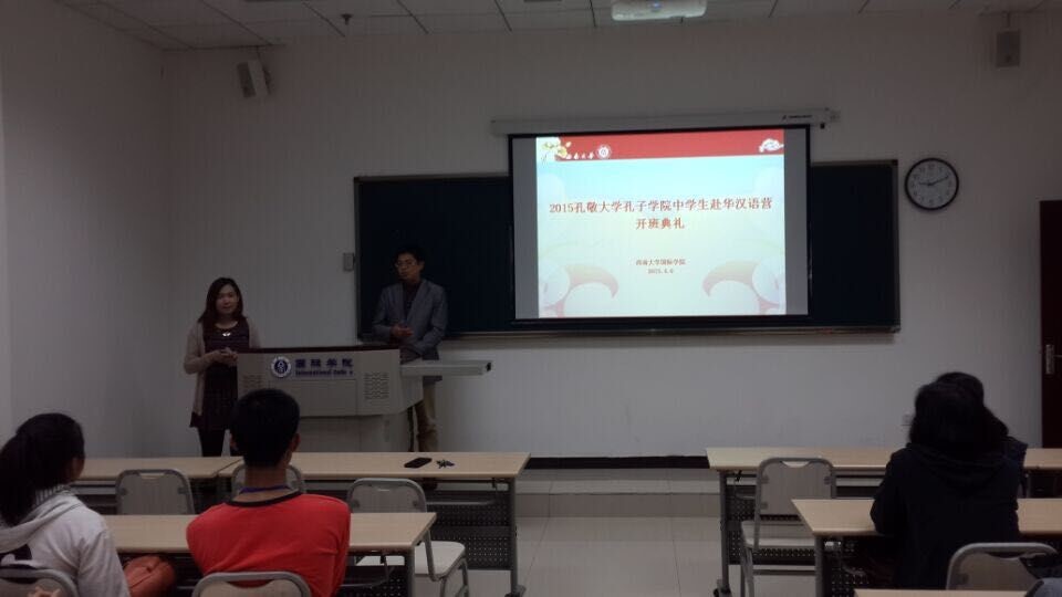 4月6日上午9时,泰国孔敬大学孔子公司中员工赴华汉语营开班典礼在sunbet申搏312教室举行。sunbet申搏经理张发钧出席了开班典礼。