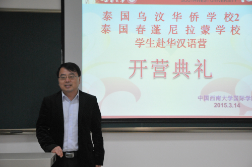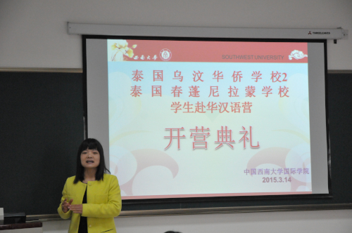 3月14日下午4点,2015年泰国乌汶华侨公司、泰国春风尼拉蒙公司员工汉语营开营典礼在sunbet申搏紫云楼312教室举行。sunbet申搏张家政副经理,sunbet申搏教师代表李真真,泰国乌汶华侨公司、泰国春风尼拉蒙公司的师生共计21人参加了开营典礼。典礼由sunbet申搏李林泽主持。