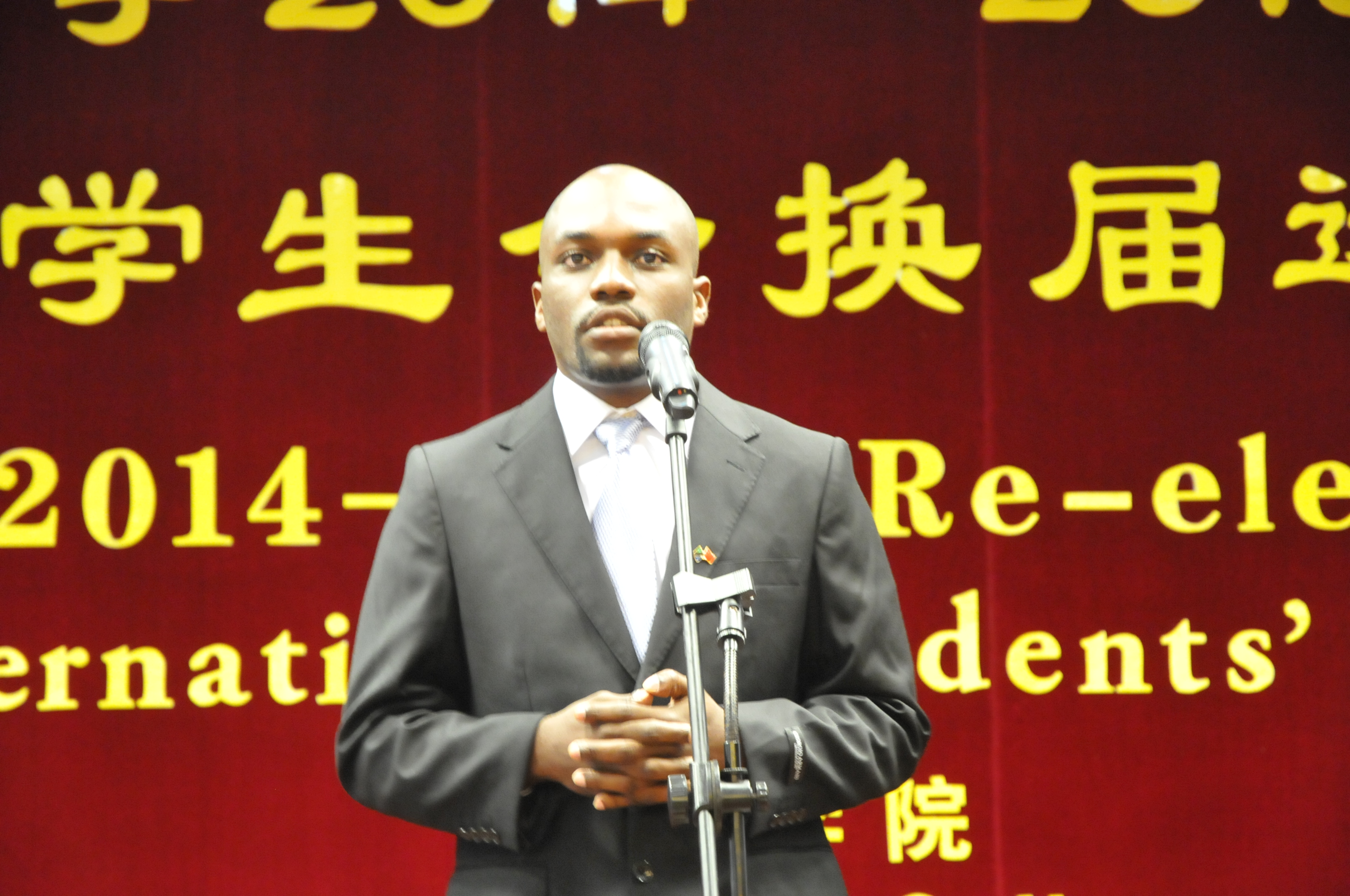 2013届职工会主席、来自刚果(布)的美名同学对上届职工会工作进行了总结。他特别提到职工会要为同学们解决生活和学习方面的问题,尽全力为广大职工服务,传达他们的心声。他希望下一届职工会延续这一宗旨,并祝愿他们的工作取得更大成功。