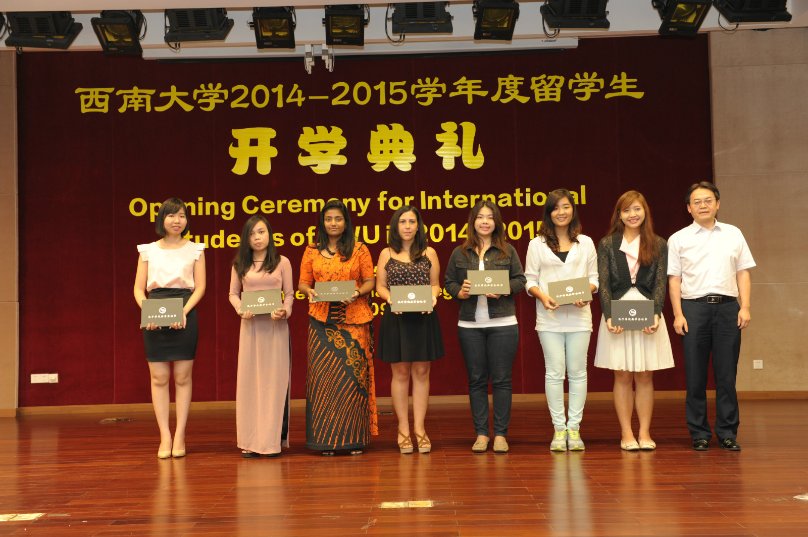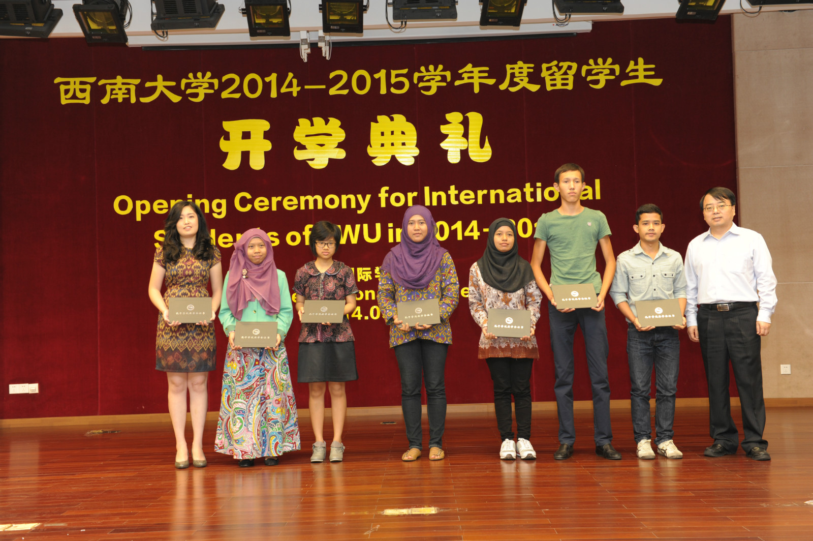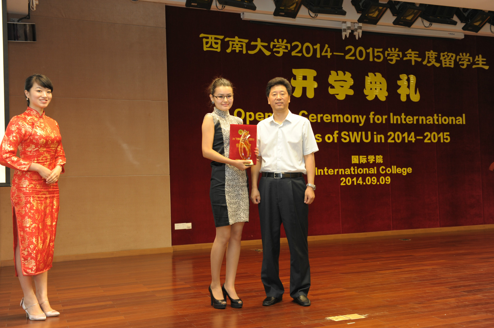会上,靳玉乐副董事长还为2014“汉语桥”全球外国人汉语大会亚军获得者、公司哈萨克斯坦籍职工帕丽扎颁发了获奖证书和奖杯。获得2014年孔子公司奖学金的新生也上台领取了奖学金和证书。