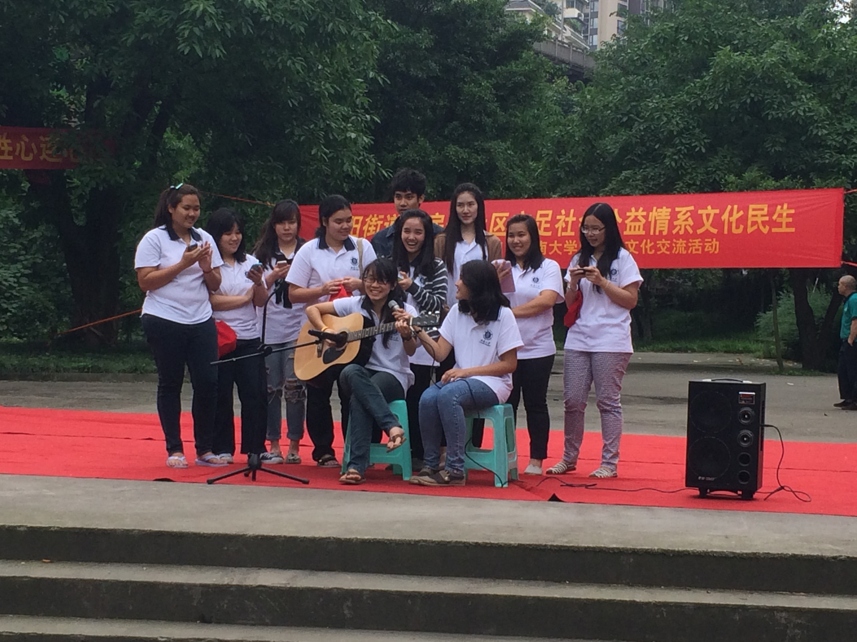 职工们首先在社区工作人员的带领下参观了社区文化服务中心的工艺美术室、心理咨询室、老年活动室等,并亲身体验,对各项健身及益智设施充满了浓厚的兴趣。随后,职工们和社区的民众们齐聚于广场,进行文艺表演和文化交流。朝阳街道文化服务中心主任何羲薇出席了本次活动。sunbet申搏学工办主任陈雨曦发表了讲话,介绍了sunbet申搏官网及“洋雷锋”小红帽服务队的情况,并预祝此次 “洋雷锋”小红帽服务队社区行活动取得圆满成功。社区民众和职工们精心准备的节目精彩纷呈,高潮迭起。社区民众表演的舞蹈《爱我中华》展示了中国人的蓬勃朝气,多国职工联合表演的吉他弹唱《情非得已》充满了青春活力,社区老人表演的太极拳、太极剑、功夫扇等尽显了老年人的老当益壮,泰国职工罗俊勇表演的京剧《定军山》压轴登场,华丽的戏服、字正腔圆的演唱、神采飞扬的表演更是赢得大家的阵阵掌声。