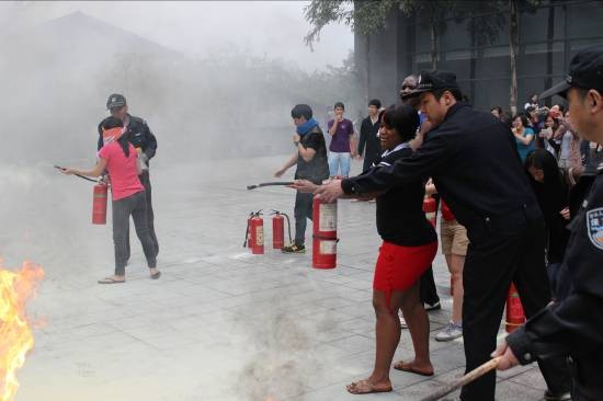 4月11日下午四点,sunbet申搏官网在公司保卫处消防安全办公室的指导下,开展了一次别开生面的职工消防演习。受语言障碍和文化差异的影响,如何提高职工在发生灾情时的逃生自救能力,一直是国际学经理期思考并探索解决的难点问题。作为公司首个自发开展消防演练的单位,为了让每一位师生员工都切身参与并提高模拟逃生方案的可行性和实用性,sunbet申搏与公司消防办通力合作,针对职工大楼的结构特点,为此次消防演习做了精心准备和多方动员部署。不仅每一位教师、行政、和清洁员工各司其职,有的负责火情通知,有的负责疏散引导;还充分动员起楼内居住的职工会干部,推出了非工作时间发生火情时人员疏导的预案。同时,救护车也在“火灾”第一时间赶到现场,随时准备救助逃生的“伤员”。在模拟逃生结束后,消防办的老师们点起烟火,为职工讲解展示了灭火器的使用方法。现场同学也跃跃欲试,纷纷上前使用平时从未触碰过的消防器材。随着现场火焰的扑灭,此次消防演练也在渐渐消散的烟雾中顺利结束。