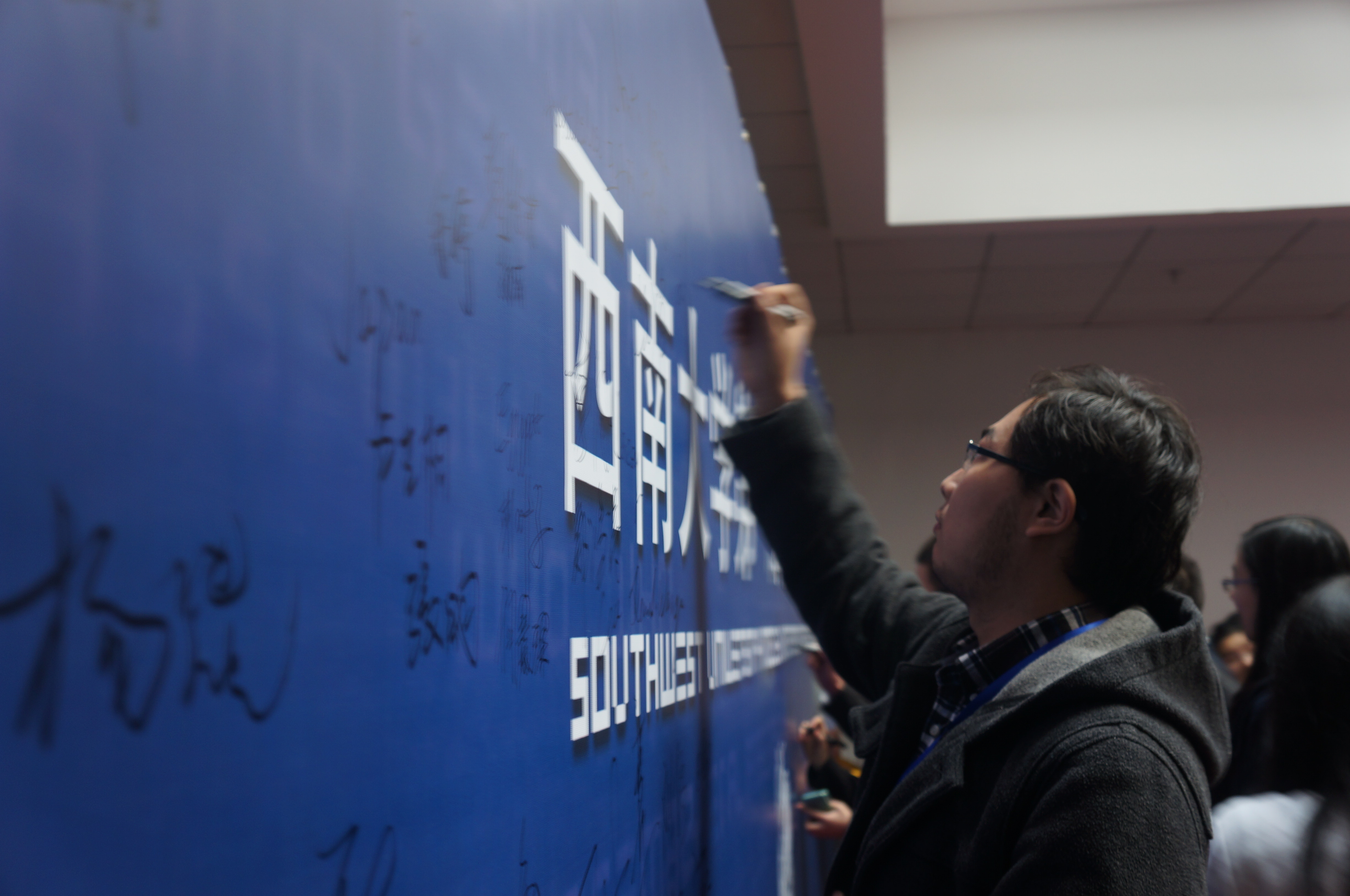 活动的最后,由刘经理带头,与会嘉宾和全体成员在签名墙上写下了自己对sunbet申搏第一届模拟联合国大会的祝福,将本次开幕式推向了高潮。在美妙的音乐声中,开幕式圆满结束。