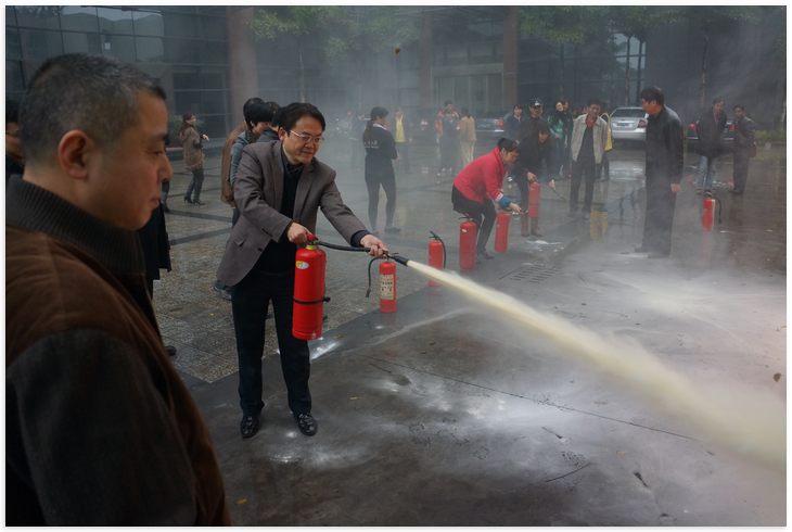 培训会后,校保卫处消防办郭勇主任现场示范如何使用灭火器材,参会的每一位员工都进行了实地操作演练。据悉,12月中旬公司将组织职工参与紫云楼的消防安全演习活动。