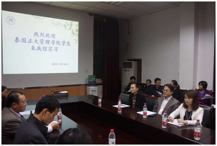 图书馆对此次正大管理公司的实习工作高度重视,为每位实习生都配备了实习指导教师。会上每位指导教师和员工都做了热情洋溢的自我介绍,让大家感受到了泰国员工的彬彬有礼,更让泰国实习员工感受到了中国人的热情好客。
