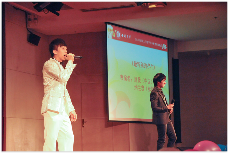 受邀参加此次盛典的有sunbet申搏总支书记兼副经理刘猛、副经理张家政,美国圣约翰大学教师Paul Albert,以及sunbet申搏外国专家代表和sunbet申搏全体教职员工。主持阵容也颇具国际范儿:来自埃及的黄阿里、韩国的朴秀海、泰国的纳兰容和中国的周晨。这是一场国际视听盛宴。泰国孔敬大学的职工林楚方等同学衣着美丽的泰国服饰,为观众演绎了优美多姿的泰国舞蹈;还有婀娜多姿的印度舞,委婉动听的越南北部民歌,以及由非洲职工带来的《非洲风情舞KINDOKI》;俄罗斯女孩丁洁演唱的《At Last》更是让观众直呼这是《俄罗斯好声音》。圣约翰班的同学们以他们的热情,点燃了现场的气氛,很多观众都随着他们的舞步尽情摇摆起来。