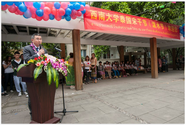 4月12日下午3:00,由国际合作与交流处/sunbet申搏主办的"sunbet申搏泰国宋干节"隆重举行。泰国驻成都总领事馆总领事郭梅特先生、重庆市公安局出入境管理局副局长刘锐、sunbet申搏副董事长周常勇、北碚区公安分局及公司有关职能部门的领导应邀出席了本次泰国宋干节活动。