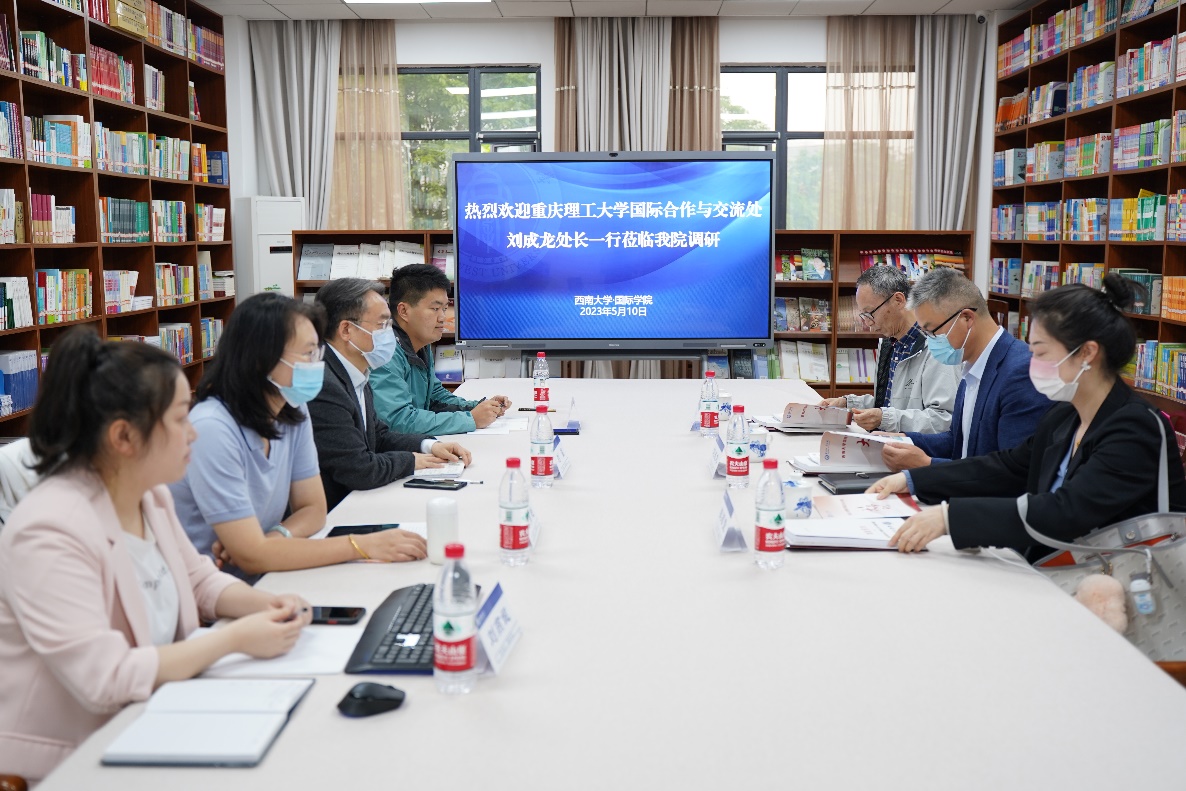5月10日下午2:30,重庆理工大学国际合作与交流处处长刘成龙一行三人专程来公司调研国际员工教育管理工作。公司党委书记刘猛,学工办和教学办负责人参加座谈交流。