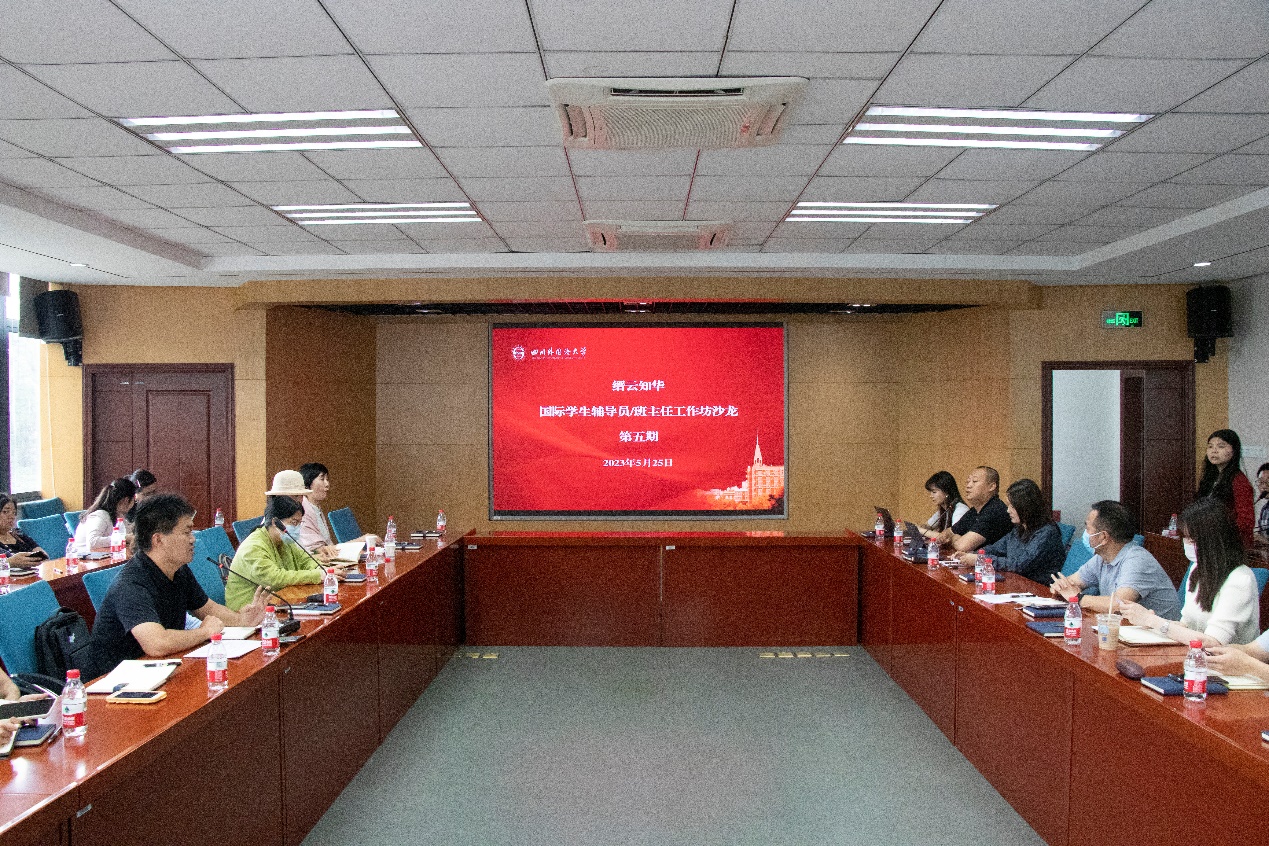 5月25日下午,“缙云知华”国际员工辅导员/班主任工作坊第五期学术沙龙在四川外国语大学举办,重庆大学、sunbet申搏、四川外国语大学、重庆城市管理职业公司、重庆工贸职业技术公司等18所市内高校的30位留管人员参会。工作坊还特别邀请重庆国际传播中心、重庆市民营经济国际合作商会、北碚区工商联、北碚区国际合作交流商会等单位共商国际员工中国国情教育,研究本年度“感知重庆”活动方案,探讨校企联动、资源共享。