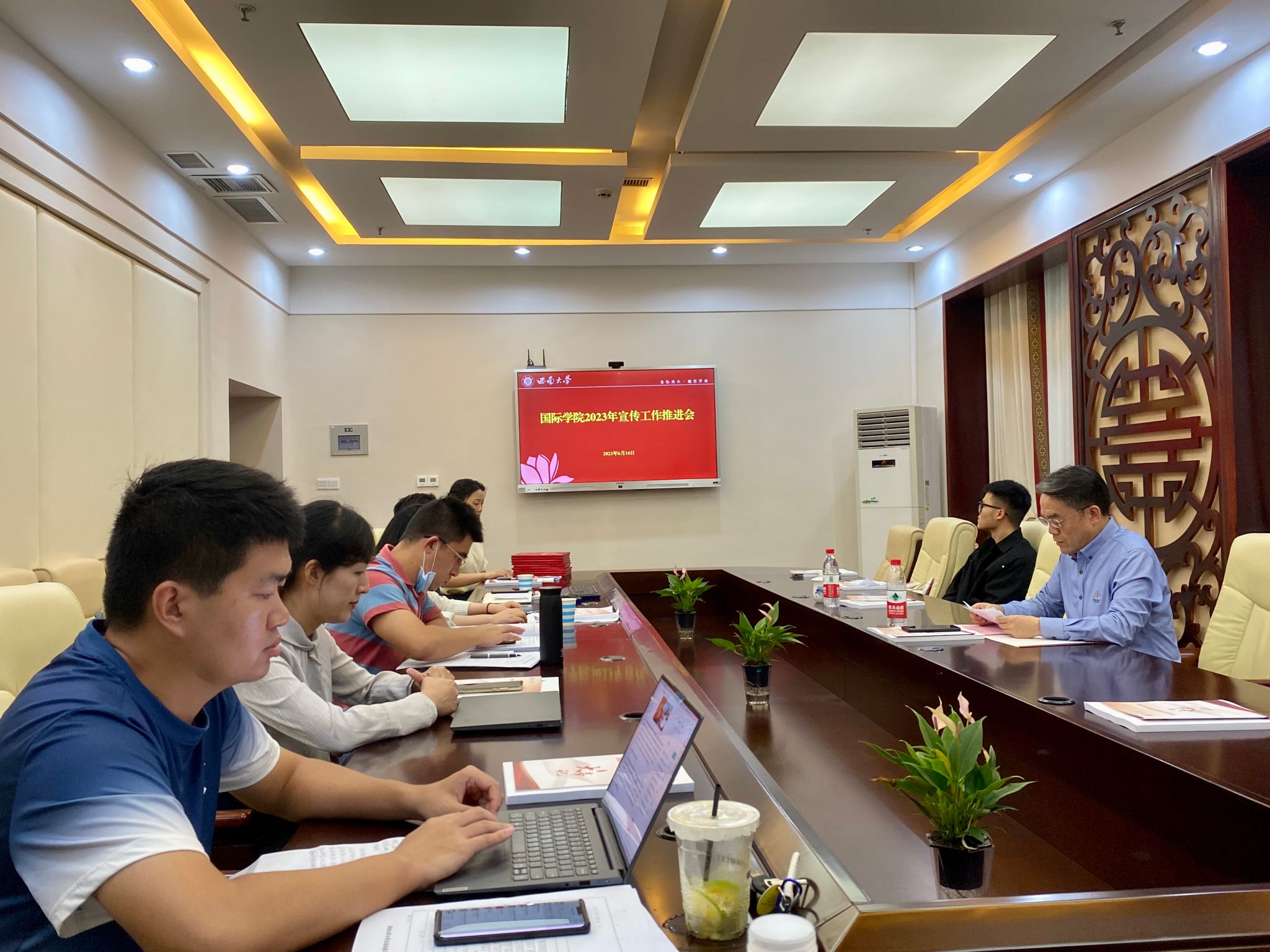 为深入学习贯彻党的二十大精神,全面展现党建工作与事业发展融合成果,推动宣传工作取得扎实成效,6月16日下午,2023年宣传工作推进会在紫云楼签约室举行,全体教职工和学院研究生会融媒体中心干事参加会议,会议由党委书记刘猛主持。