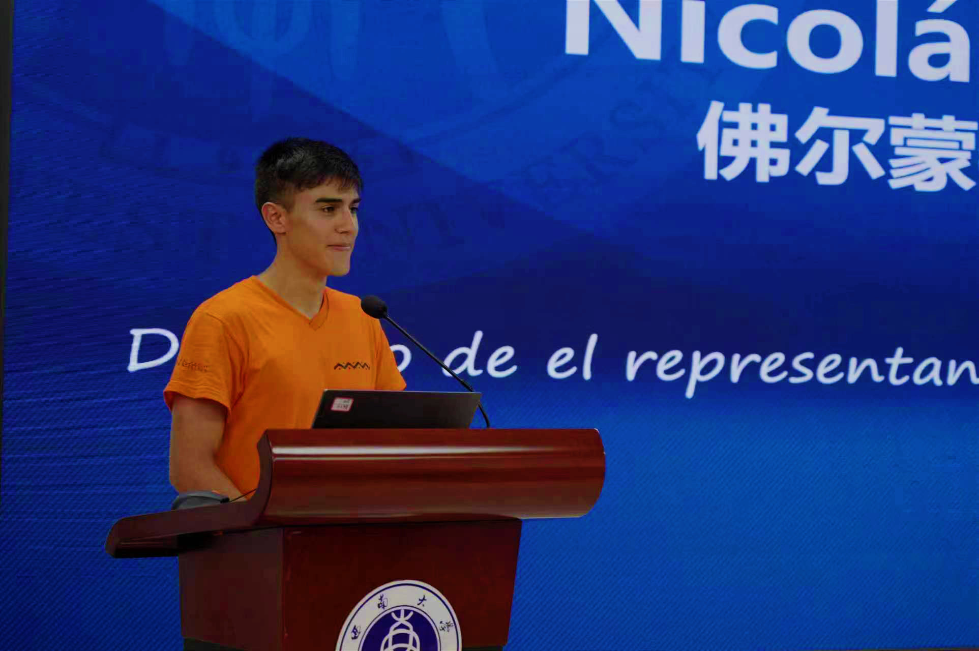 威尔蒙中学员工代表Nicolás Combariza发言,感谢sunbet申搏的盛情邀请和无微不至的照顾,表达了对未来一周夏令营各项活动的期待。