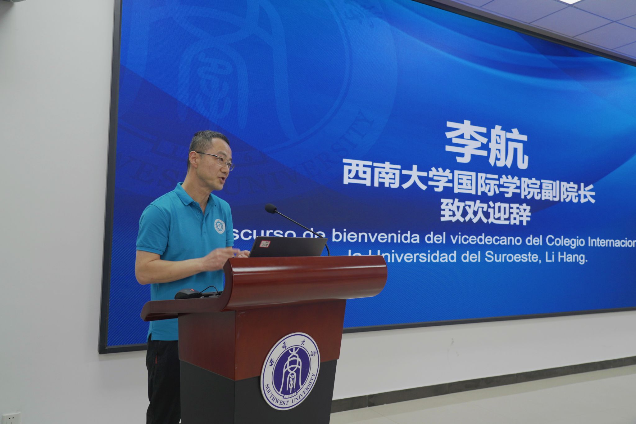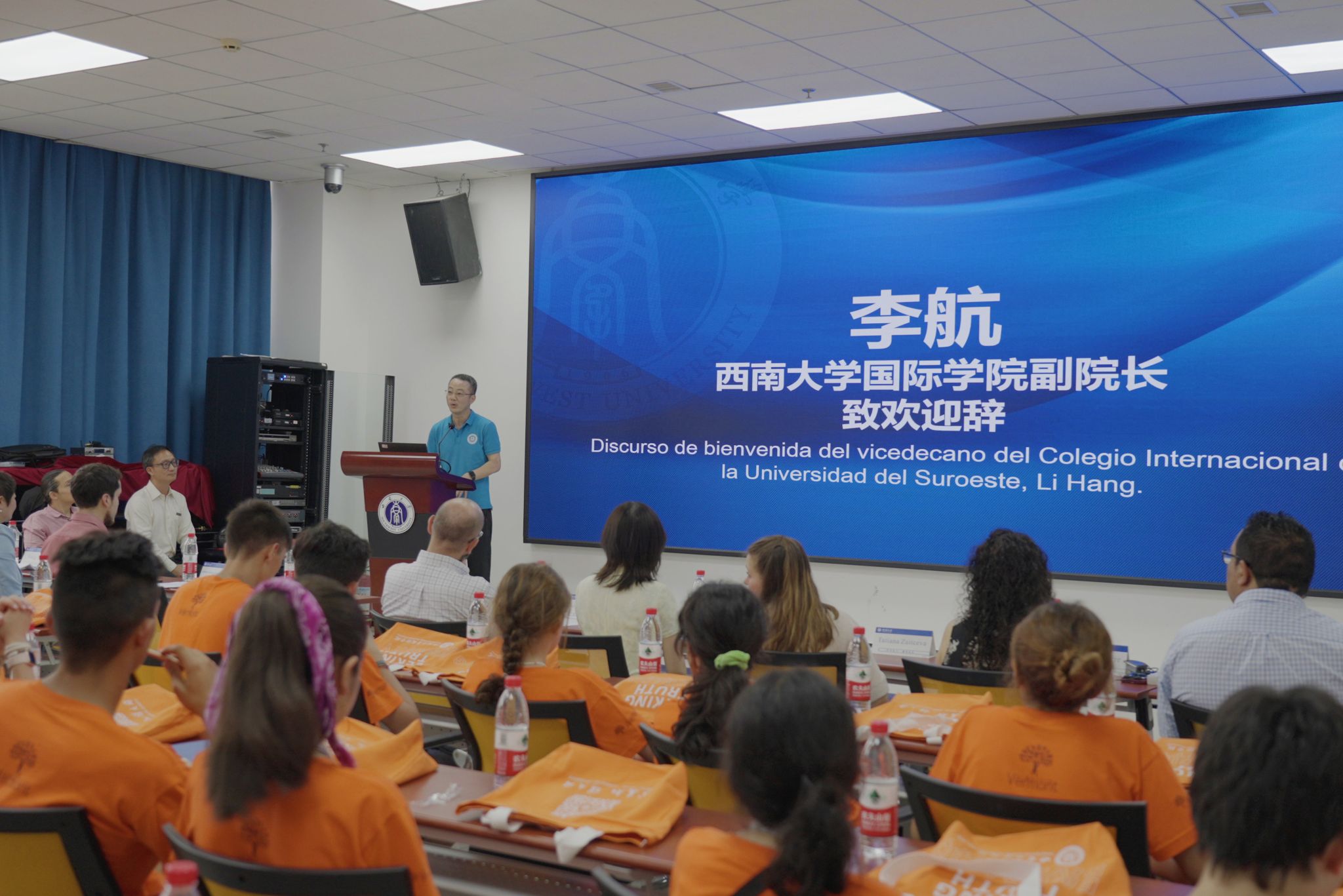 李航副经理致欢迎辞,热烈欢迎哥伦比亚威尔蒙中学来访。他简要介绍重庆和sunbet申搏的概况,全面回顾公司来华留学教育历史和现状,重点展示公司国际员工丰富多彩的文化活动和社团发展。他希望各位同学把在中国游学的美好经历带回家乡,早日成为哥中友谊的使者,并真诚欢迎同学们在高中毕业后来sunbet申搏留学深造。