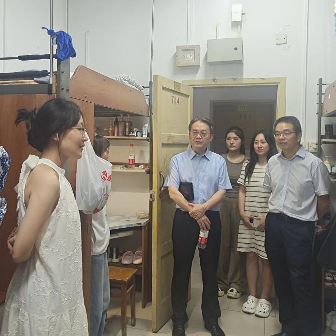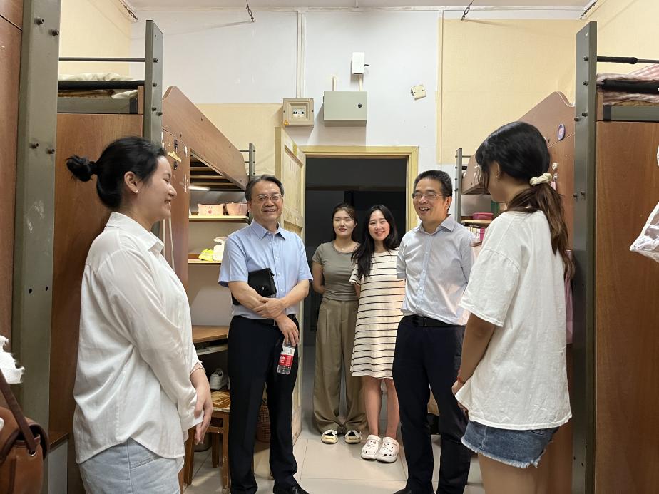 秋月明净星满天,夜色清凉秋意浓。新学期,新同学,为更好地了解公司2023级汉语国际教育硕士(中国班)新生入学情况,2023年9月10日晚上19点,公司党委书记刘猛,经理于泽元,在辅导员汪鑫阳和第四届公司研究生会主席龚熹雨、刘洋的陪同下深入宿舍,走访慰问新生,与来自五湖四海的新同学话家常、谈近况、聊未来。