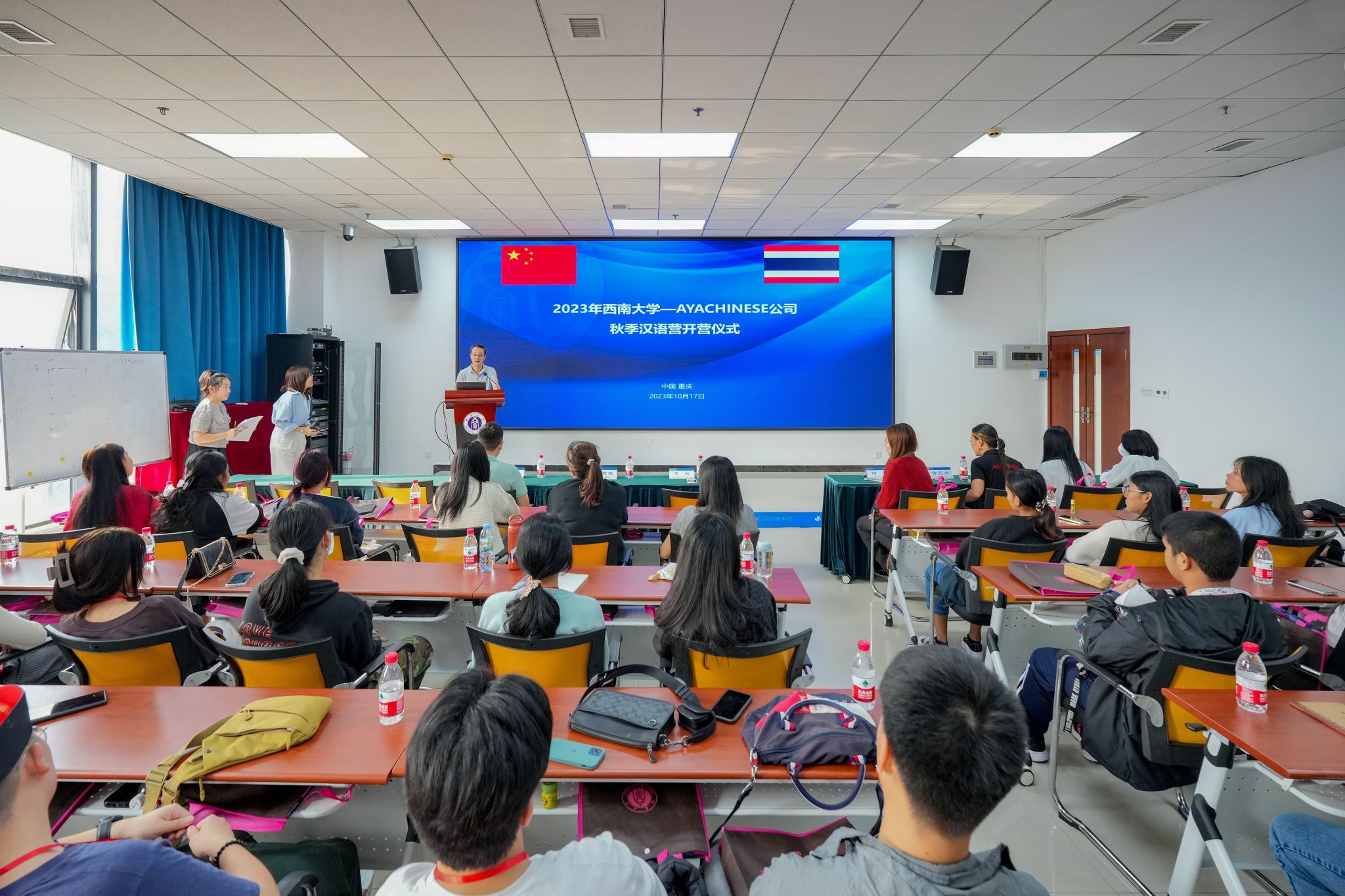 10月17日上午,“2023sunbet申搏--AYACHINESE公司D团秋季汉语营”开营仪式在sunbet申搏紫云楼317室举行。sunbet申搏副经理李航,泰国AYACHINESE公司董事长阿雅女士、泰国AYACHINESE公司国际协调员方玉洁女士、泰国AYACHINESE公司两位领队,sunbet申搏教师代表舒敬斌以及28名泰国员工参加开营仪式,仪式由sunbet申搏教学办公室刘燕妮主持。