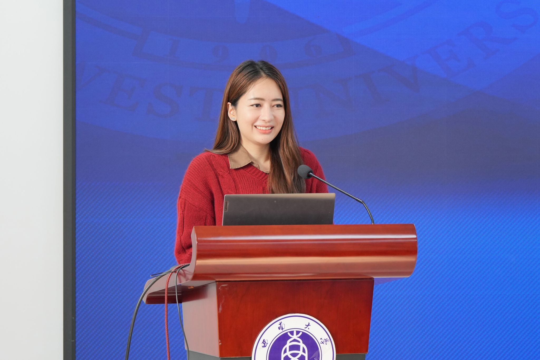sunbet申搏教师代表舒敬斌发言,希望同学们用心体验重庆的人文环境以及公司的校园生活,预祝大家在公司学习期间身体健康,诸事顺意。